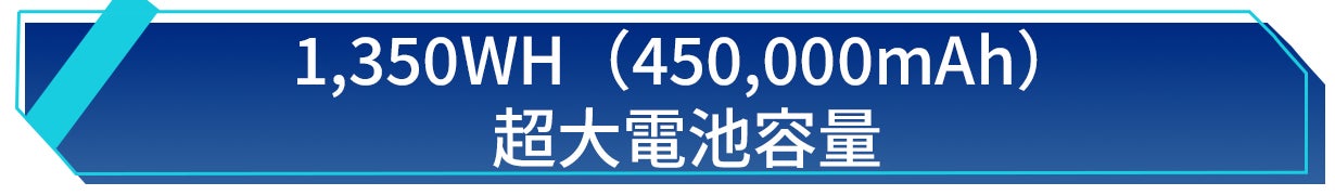 さらに、最大2,400W出力対応、13口(5種類)の出力ポート搭載、1,350Wh(450,000mAh)大容量内蔵など魅力的なポイントが満載されているのもポイント!