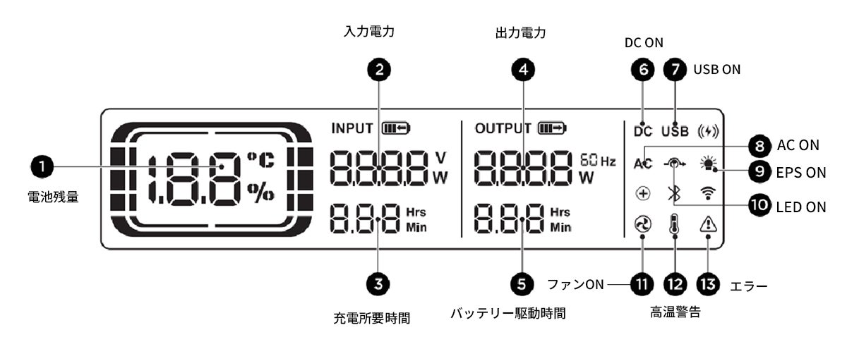 スマホにも負けないくらいの大型LCDディスプレイを搭載。放電中のパートや電池残量、残り時間、出力電力などの情報が一目瞭然!📺