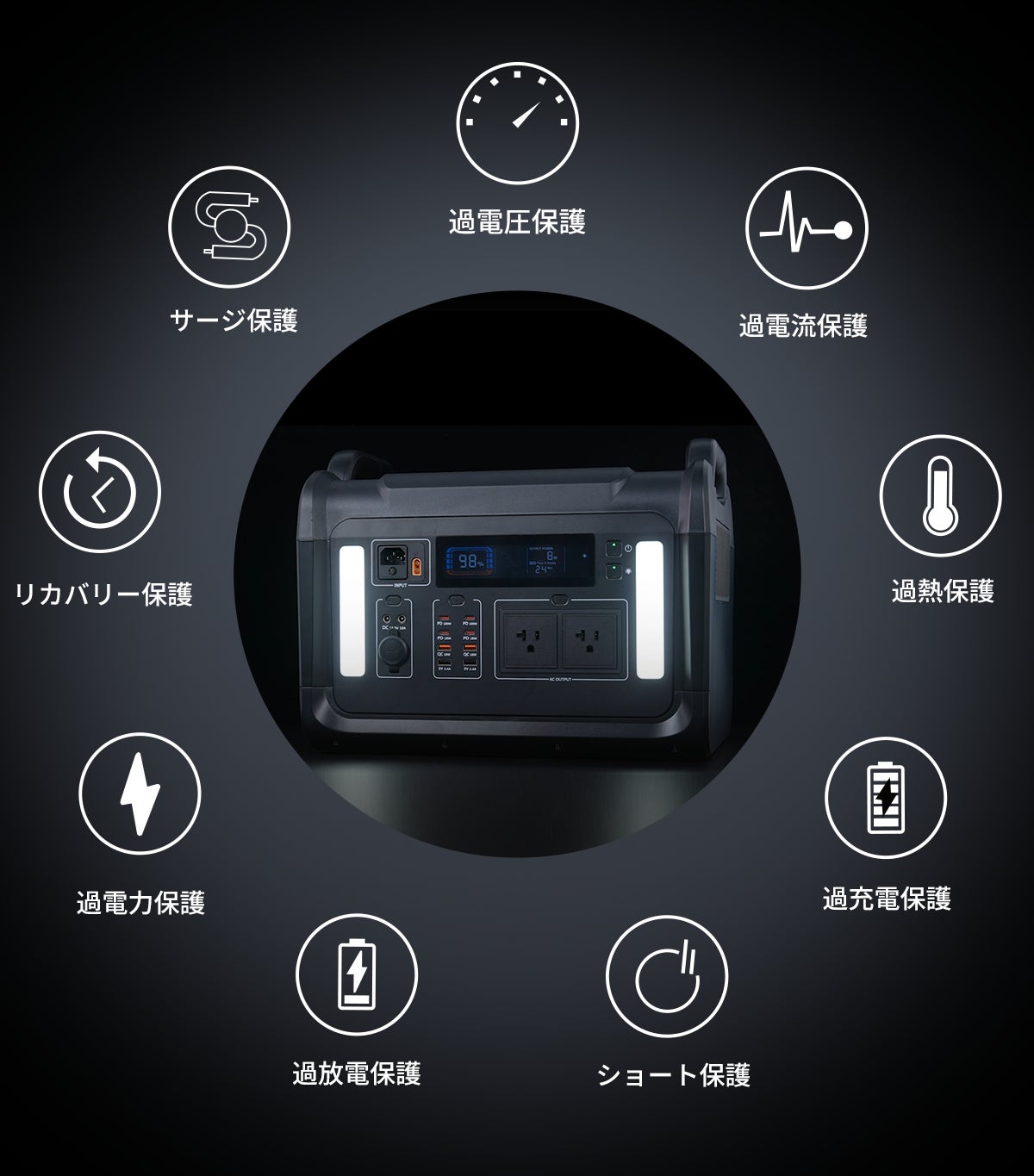 電気製品、特にポータブル電源のような電力を貯蔵するデバイスにおいて、安全性は非常に重要です。「SodiBox」は過電圧保護、過電流保護など合計9つの安全保護技術を搭載しており、安心してお使いいただけます。🛡️