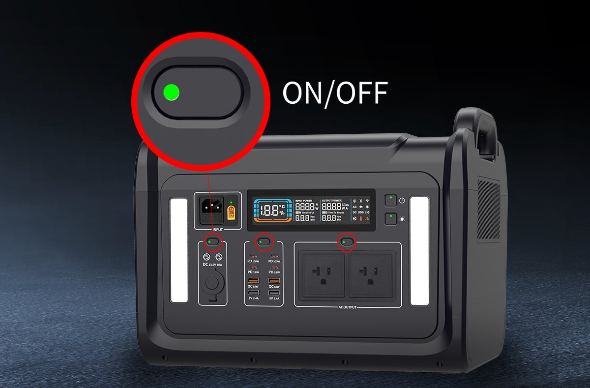 メイン電源ボタンのほかに、USB出力パート・AC出力パート・DC出力パートにはそれぞれオン・オフをコントロールするボタンを搭載。使いたいパートをオンに、使わないパートをオフにすることで、放電を集中化させ、他パートの自然放電速度を抑えることが可能!