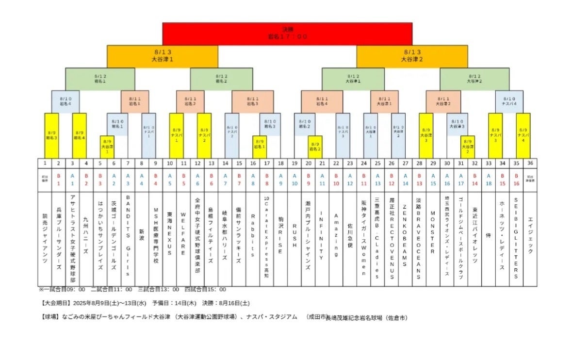 ・初戦 8月10日(日) 11:00~ VS備前サンラッキーズ(岡山県)
