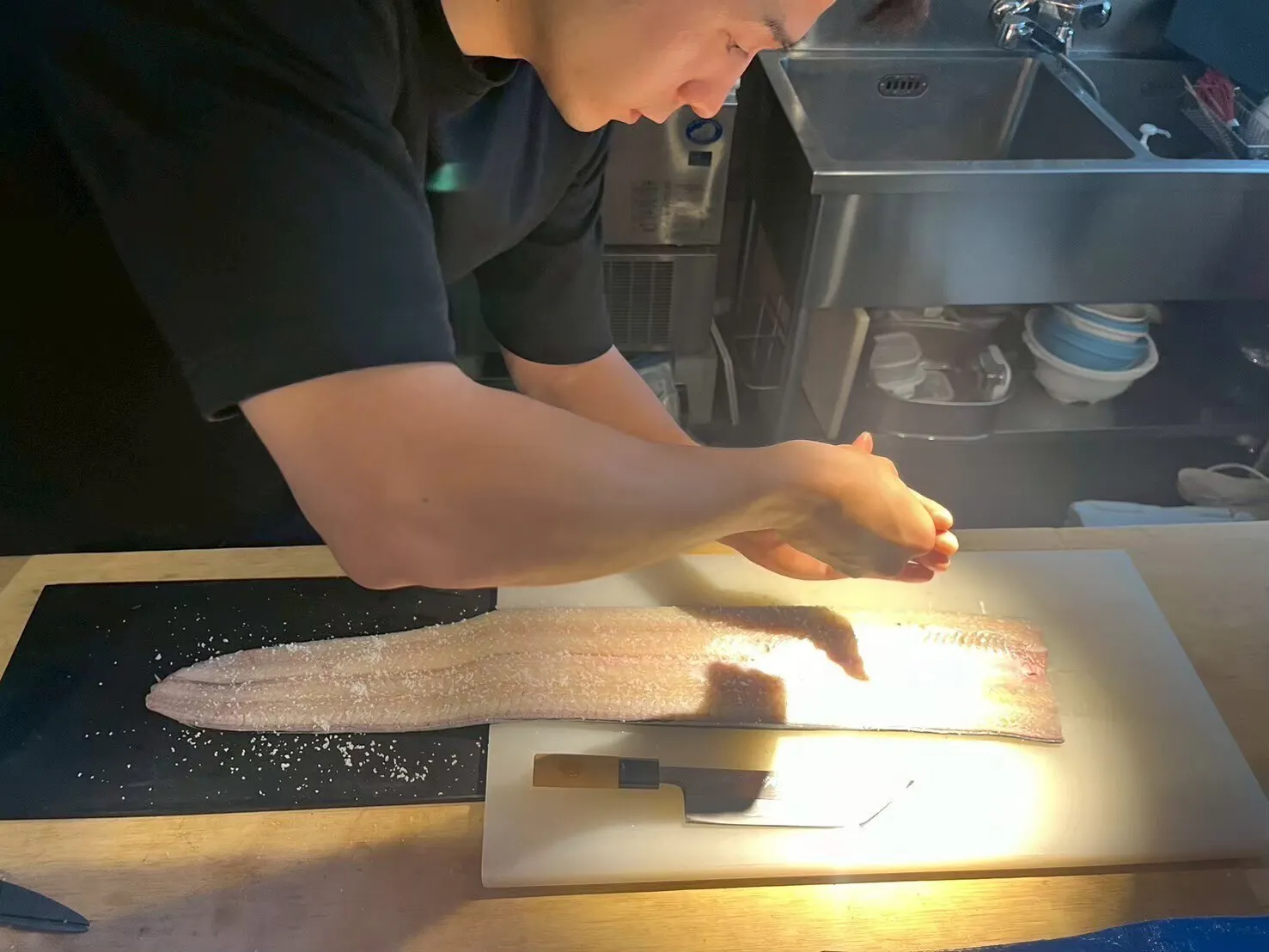お店は温かく活気のある居心地の良い空間となり、その中で世界基準のプレゼンテーションと江戸前の職人の作る”一体感””新体験”=新しい食体験を楽しんでいただけたらと思います。