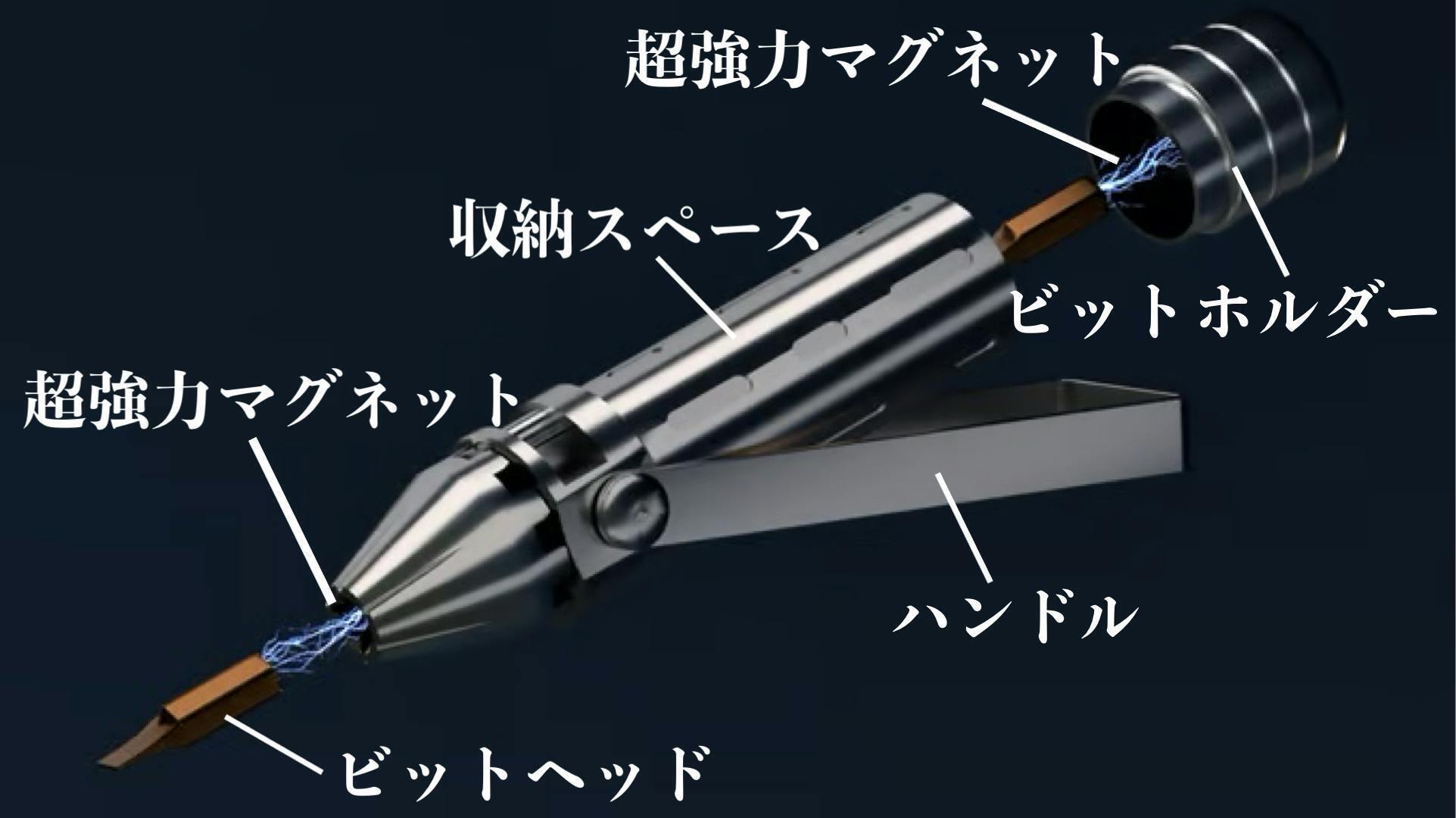 ビットホルダー内部には、ビットヘッドを安全に保管する超強力マグネットが内蔵されており、アタッチメントを探す手間を省きます。