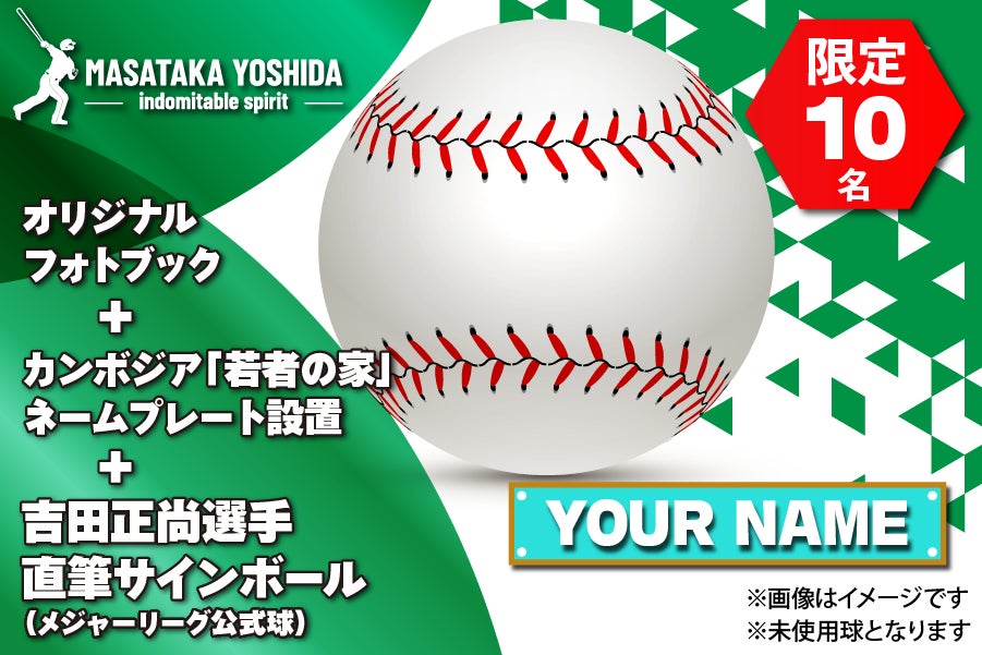 5)オリジナルフォトブック+直筆サイン入りバット+カンボジア「若者の家」ネームプレート設置