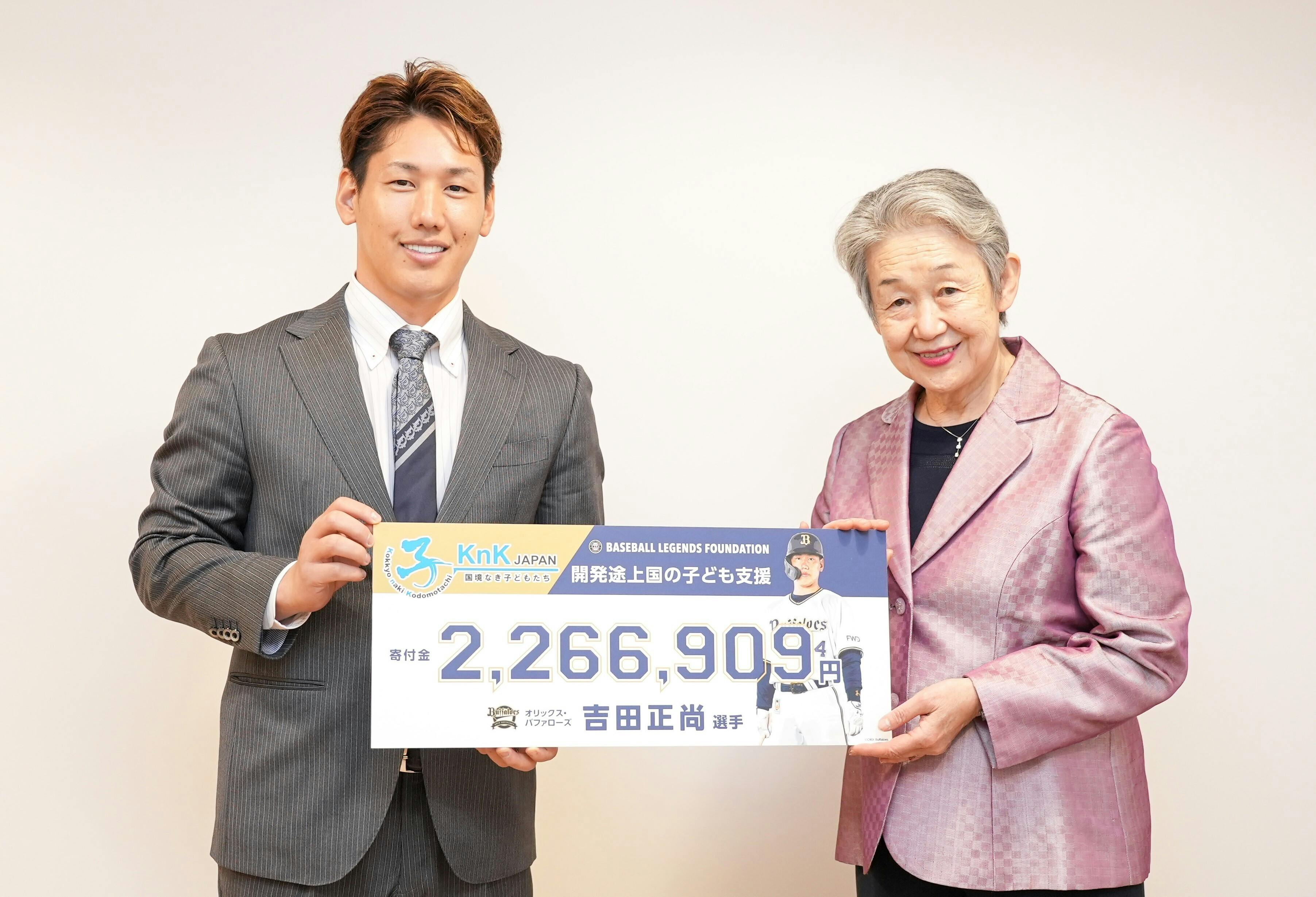 吉田選手は2019年シーズンから、プロ野球公式戦でホームランを1本打つごとに10万円を、メジャー移籍後の2023年シーズンからはホームラン1本ごとに10万円+ヒット1本ごとに1万円を積み立て、オンラインで募ったファンの皆様からの寄付と併せて「国境なき子どもたち」に寄付しています。