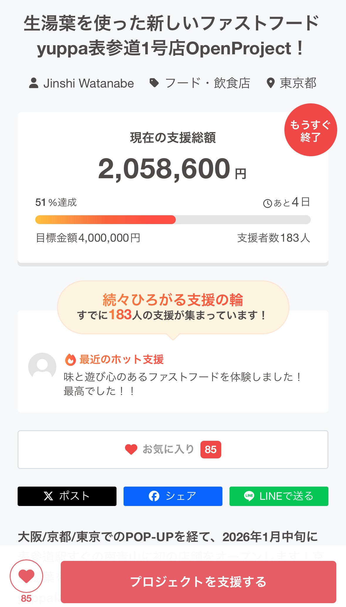 1ヶ月間のクラウドファンディングも残り4日となりました!終盤になり、爆増中です…!