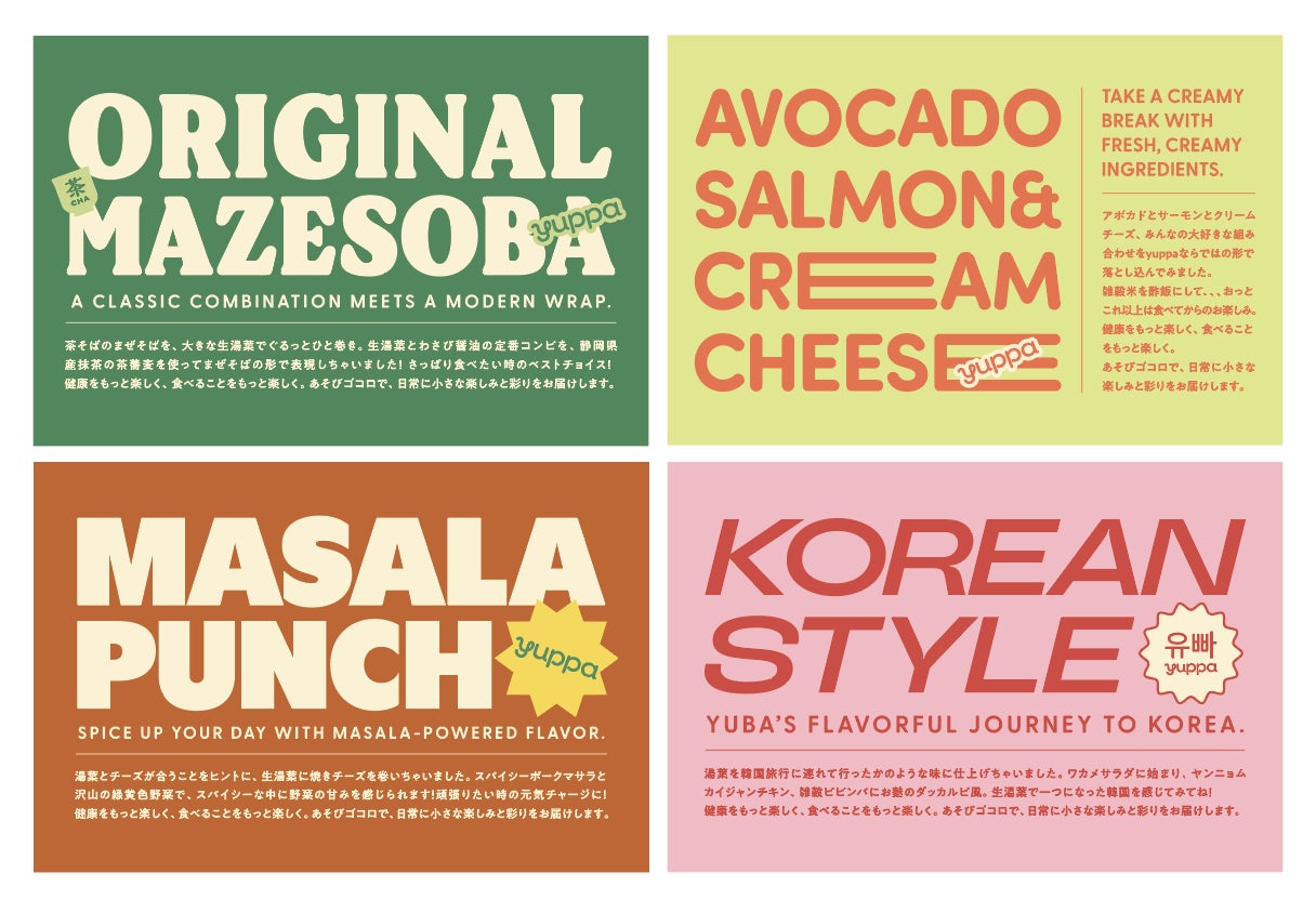 yuppaは、何よりもファストフードらしい、楽しさやフレーバーの多様性を大切にしています。フレーバーシールをよくみていただくと、それぞれにテーマがありますので、ぜひそれも読んでいただいて、どれが食べてみたいかぜひ想像を膨らませてみてください!