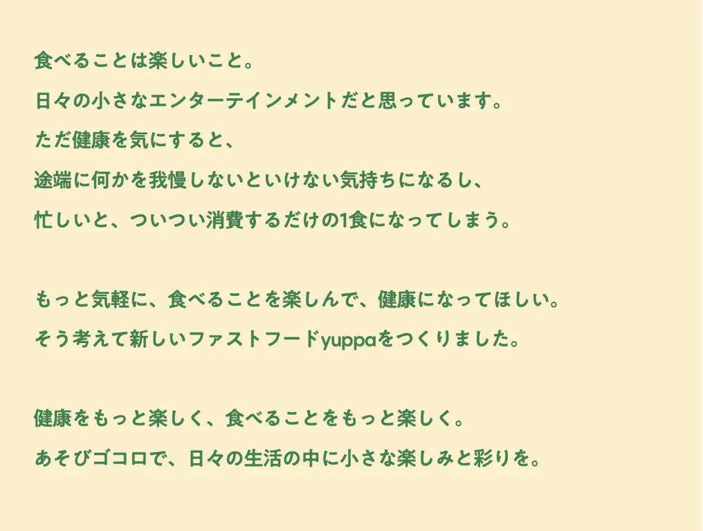 yuppaは、「健康にあそびゴコロ」をブランドコアとしているブランドです。