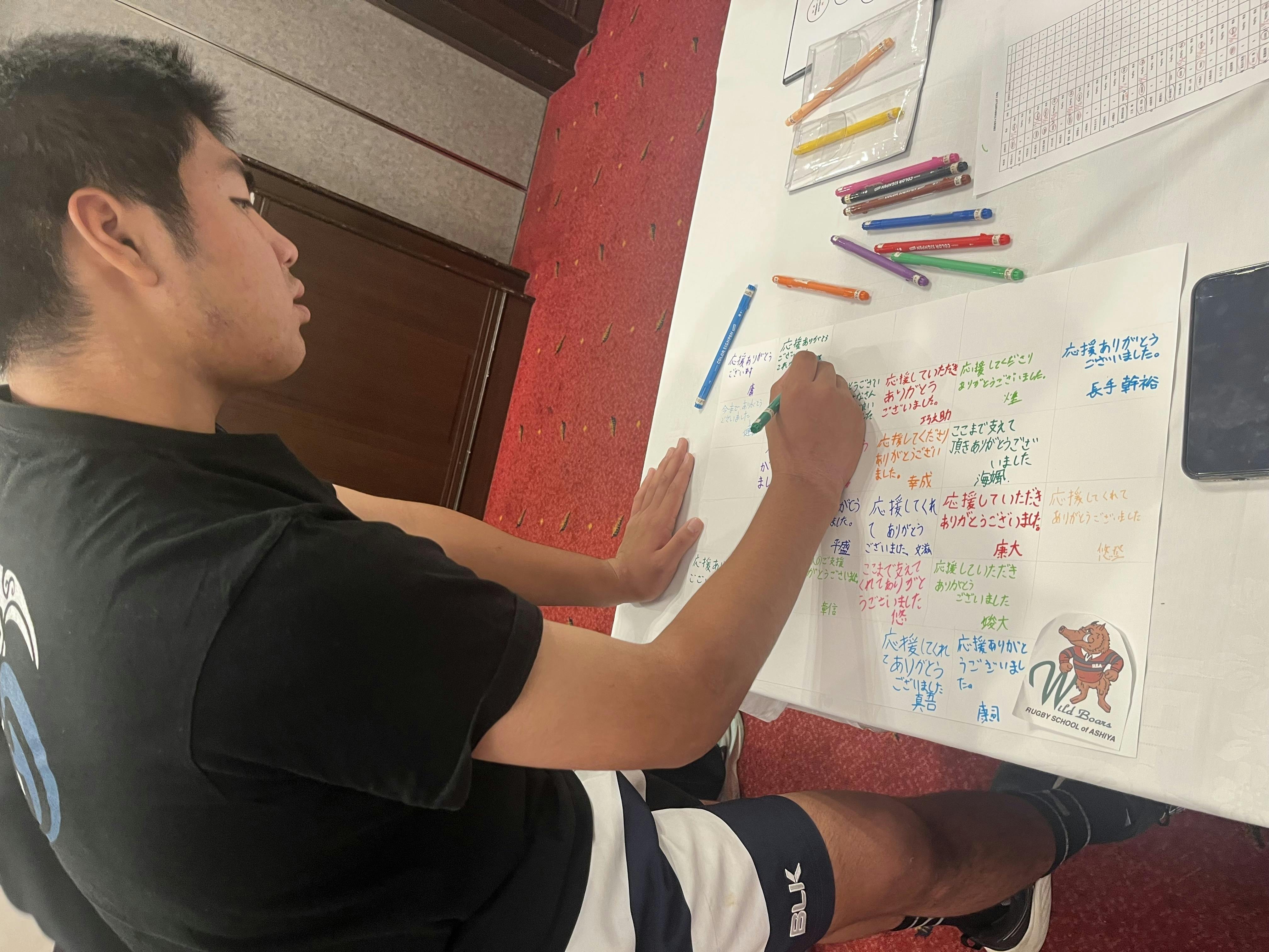 2025/10/20 17:07ご支援をくださった皆様に『太陽生命カップ2025優勝への道』ご支援くださいました皆様に向け、芦屋ラグビースクール中学部を代表し30名のエントリーメンバーが心を込めて寄せ書きをしまた。グランドで観ると頼もしい選手達も、いざ字を書かせると普通の男子中学生…個性的で拙い文字が並びましたが、皆様への感謝の気持ちは全員から感じとれます。こちらの寄せ書きをPDFデータにし、皆様のもとへメールで送らせていただく予定にしております。クラファン部上げてご用意しておりますのでもうしばらくお待ち頂けたらと思います! もっと見る