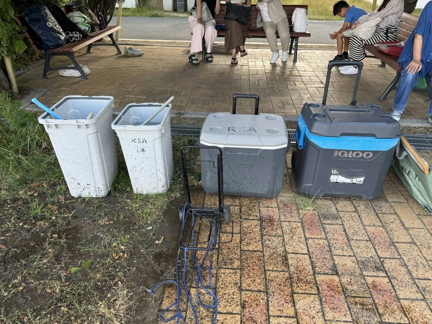 15時〜とはいえ、暑さの残る時間帯の練習は、頭からバケツ氷でクールダウン、こまめな水分補給、スポドリ各自1本持参等で熱中症予防をしています。