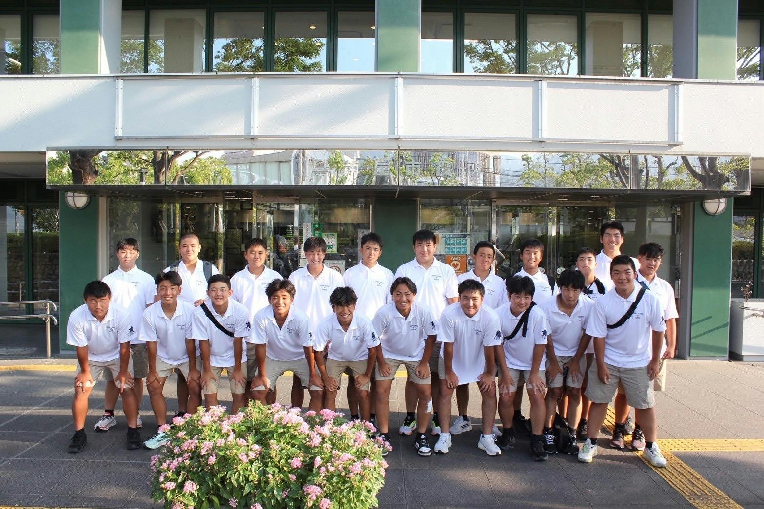 芦屋市長表敬訪問兵庫県芦屋市、高島りょうすけ市長に[太陽生命杯2025全国大会]に出場する事を報告しに芦屋市役所を表敬訪問しました。高島市長は学生時代にラグビーをされていたので、緊張する選手達を前に「中学は何人制?」「スクラムは押して良いの?」「モールはやっていいの?」「チームの強みは何?」と、たくさんの興味を持って質問してくださいました。選手達もすぐに打ち解けて冗談まで飛び出すほどに笑最後はお馴染みのポーズで写真撮影後、キャプテンたっての希望で、市長のインスタグラムにまで掲載していただきました!高島市長、職員の皆さん、お忙しい中ありがとうございました。また秋に必ず優勝の報告をさせて下さい!