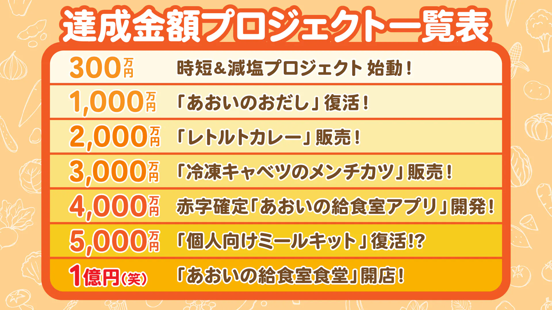 A:プロジェクト未達成でも、献立表は作成されます。