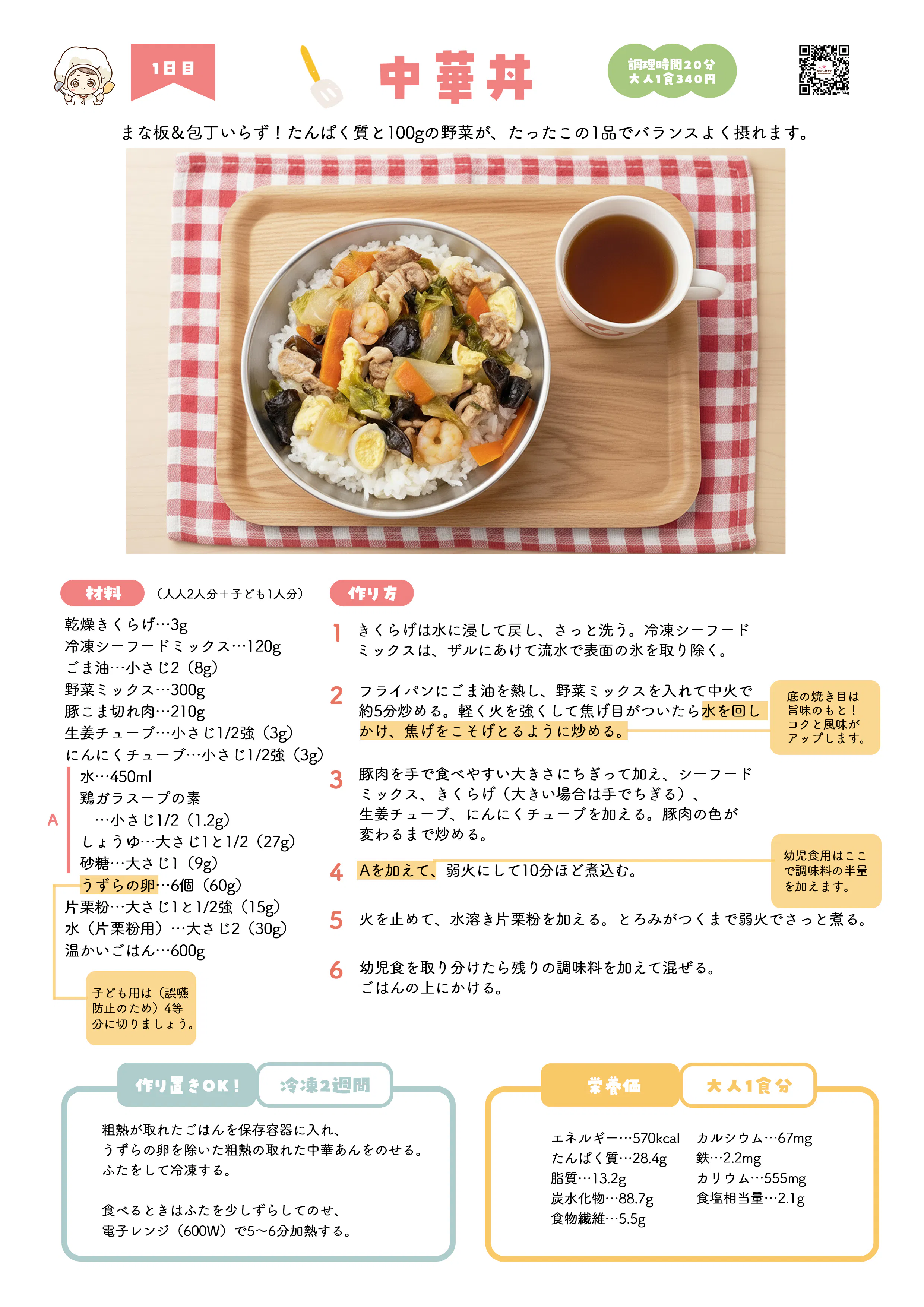さらに幼児食取り分けガイドつきなので、子ども(1歳半~)と大人の食事が同時に完成。帰宅後の面倒くさいを解消します。