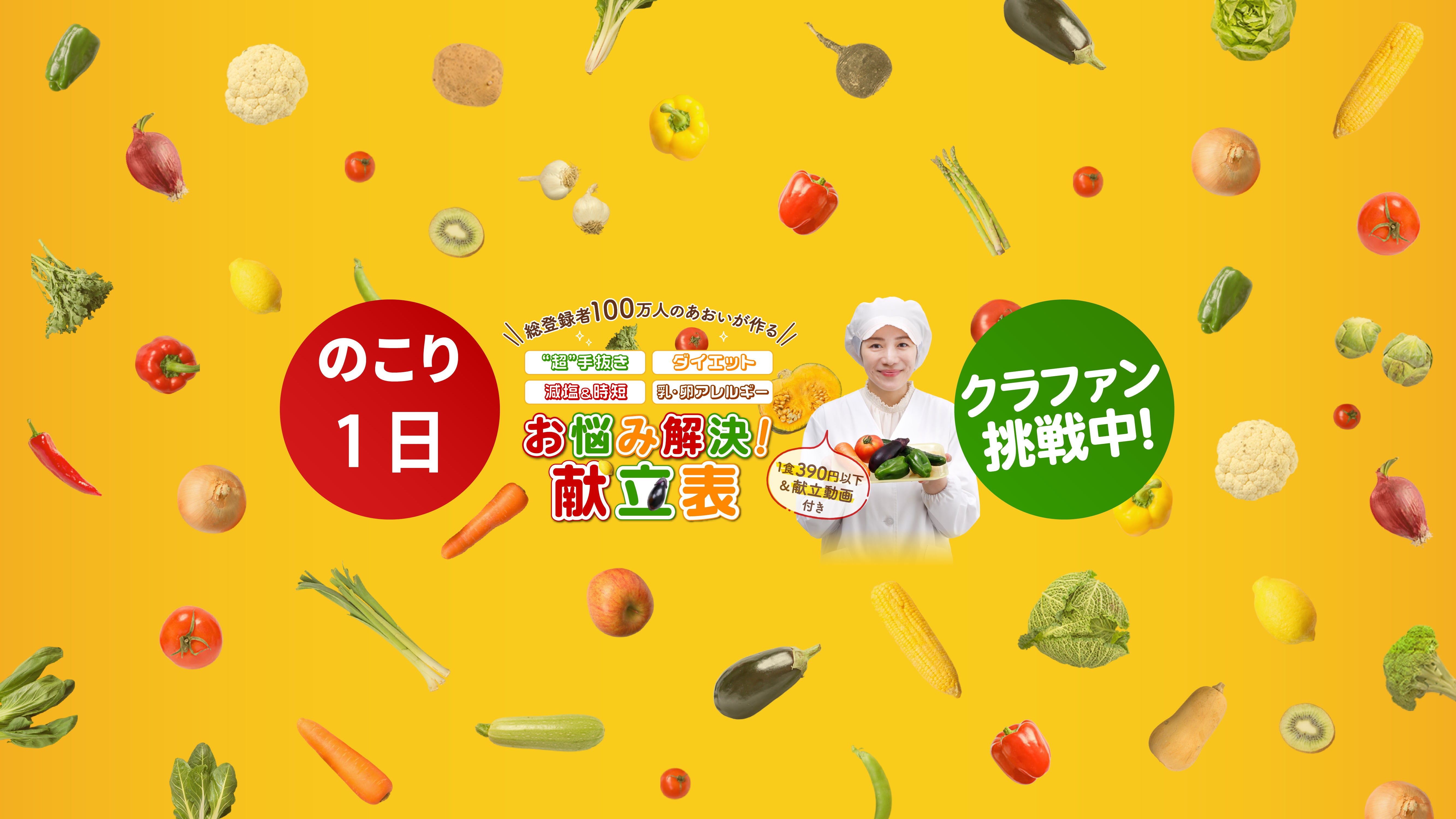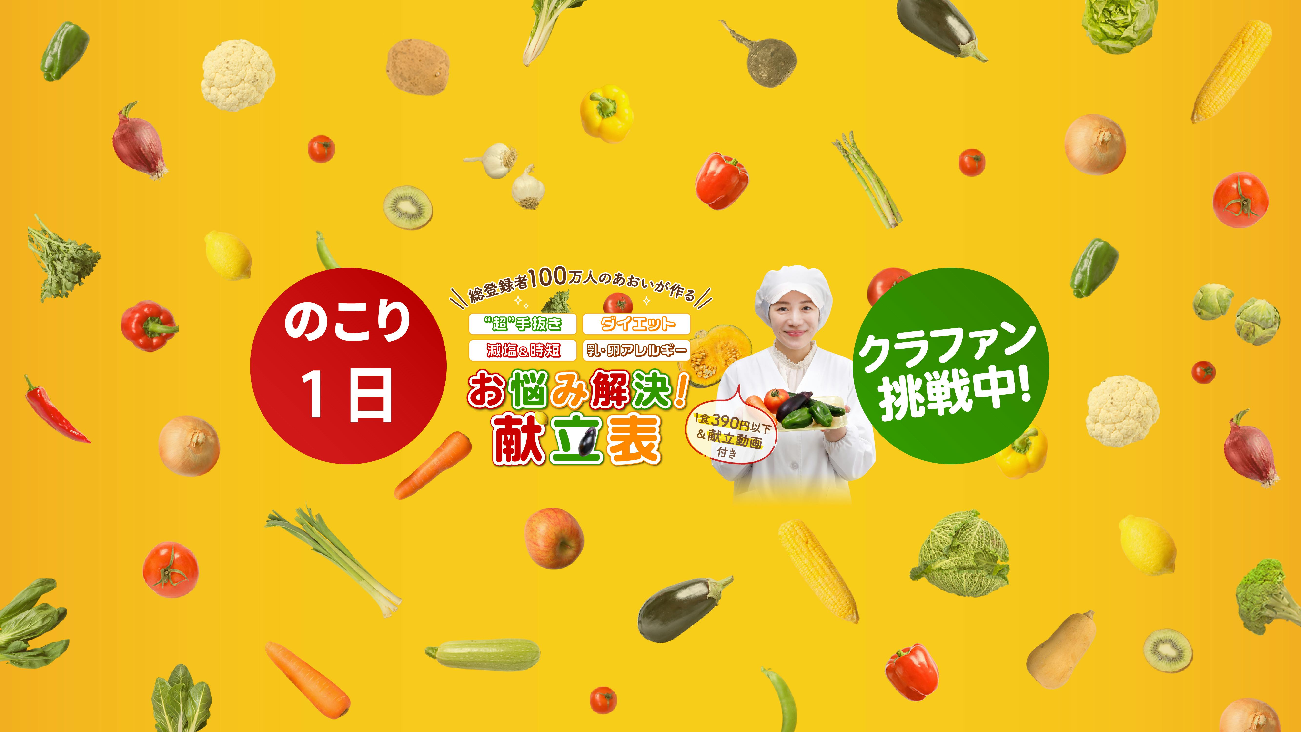 「お悩み解決 献立表プロジェクト」クラウドファンディング終了まで、ついに残すところ、あす1日となりました!