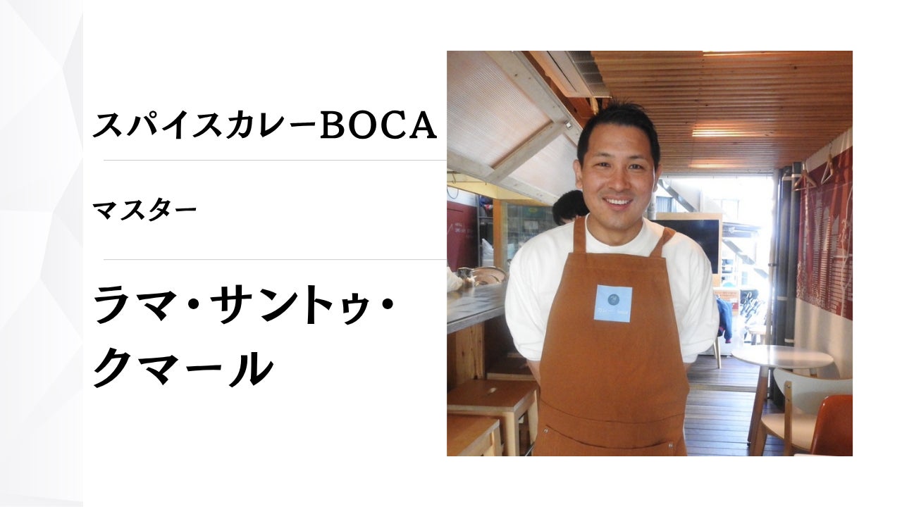 はじめまして。「スパイスカレーBOCA(ボカ)」のラマ・サントゥ・クマールと申します。