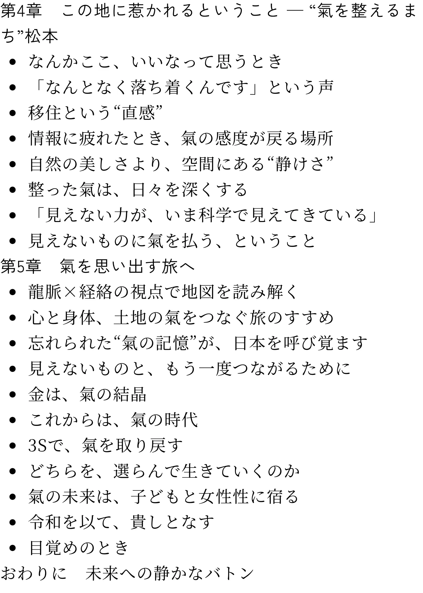 このプロジェクトは、「氣」という概念を通じて、松本から日本の魂を再生する試みです。