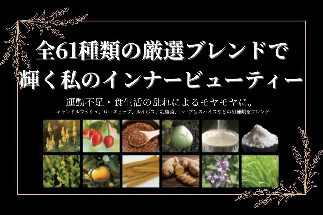 長年、インナービューティ市場を牽引してきた同社とともに、"内側からのアプローチ”を大切にする、トータルビューティの考え方を導入ここで誕生したのが、61種を独自配合したハーブティーです。