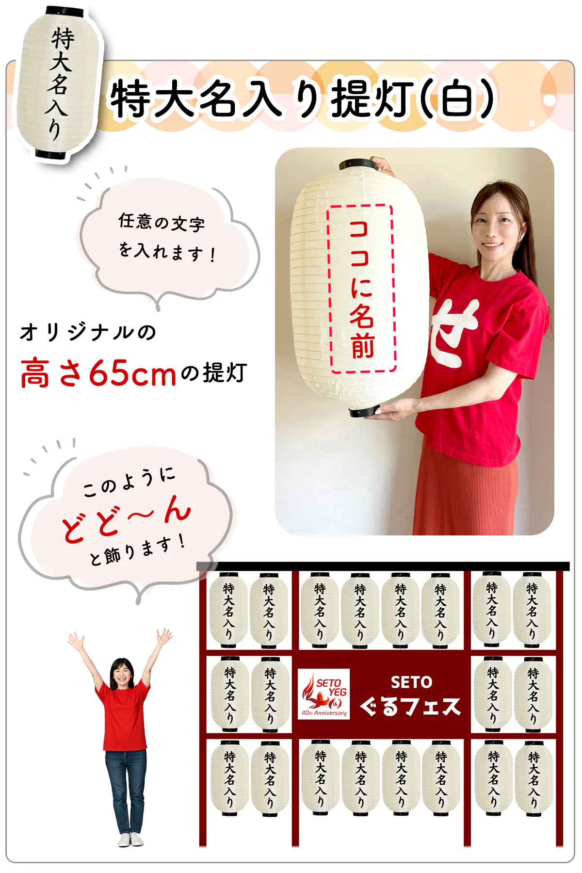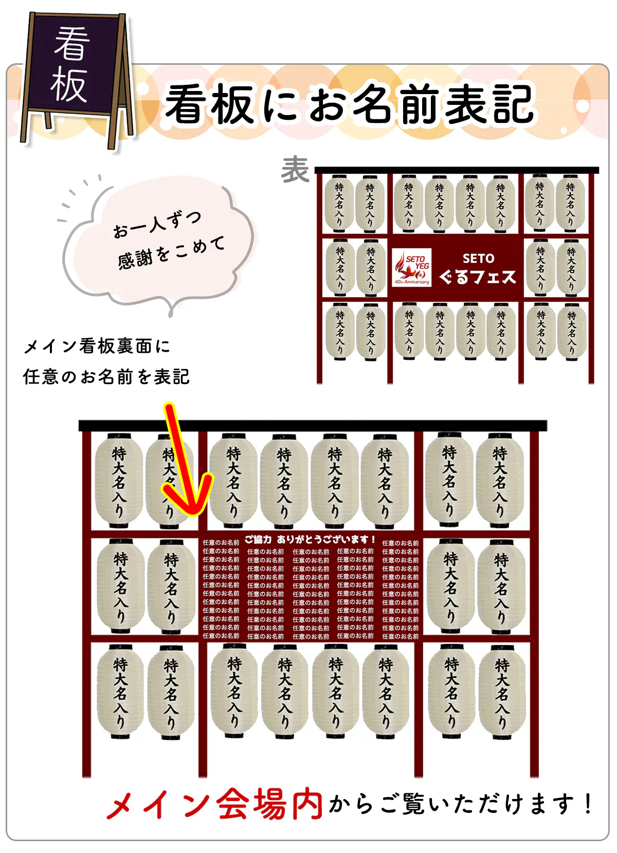 (※名入りの提灯(中)、特大名入り提灯は、一部のプランの希望者に郵送いたします。