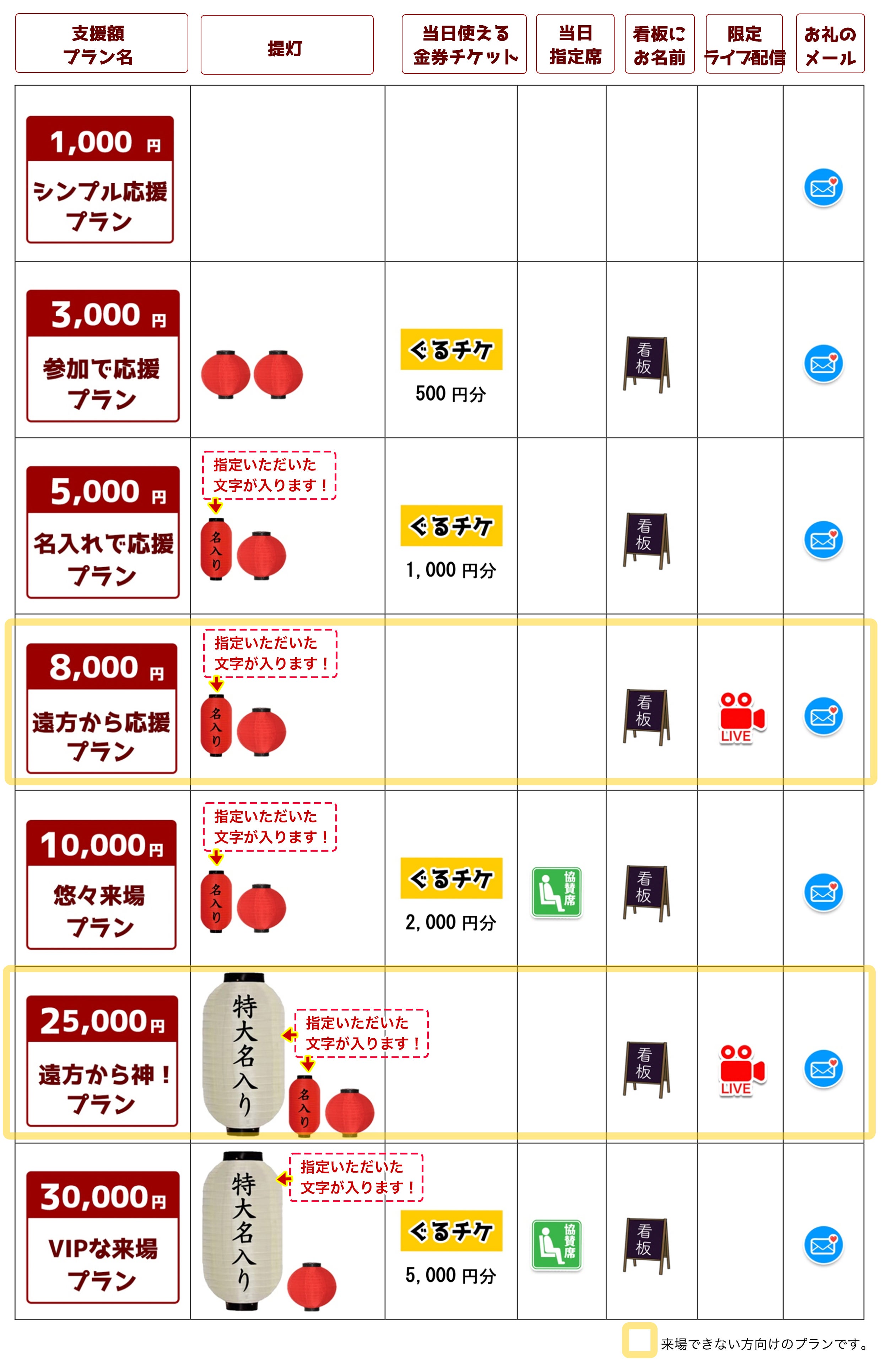 (※名入りの提灯(中)、特大名入り提灯は、一部のプランの希望者に郵送いたします。