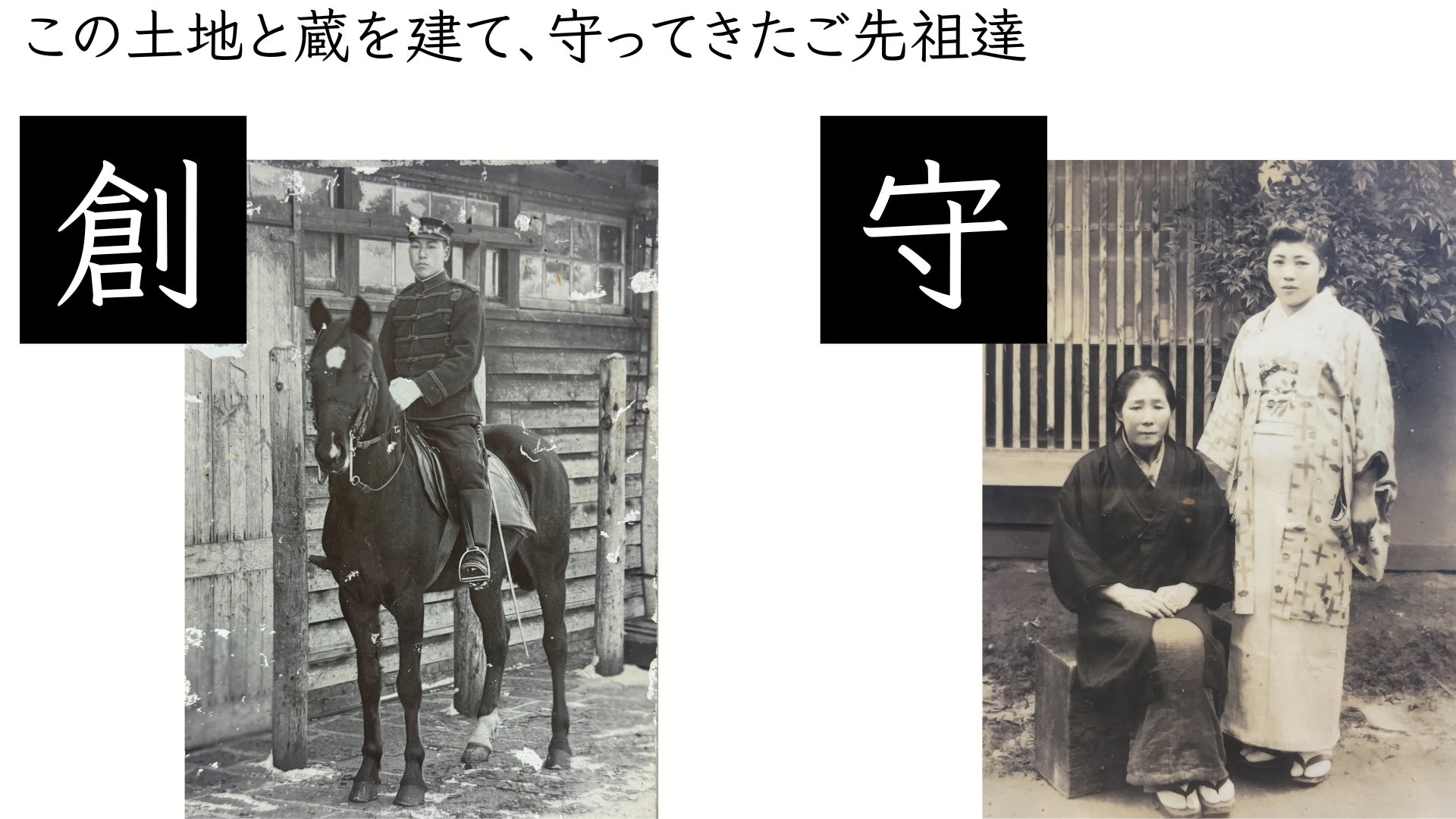 この土地と蔵を創り、守ってきた人たちがいます。この蔵は百年を超えて、今もここに在ります。ご先祖様へ心から感謝し、まずはこの蔵からスタート致します。そして、この蔵を起点に、日本各地に今も残る蔵を、壊すのではなく再生し、次の役割を与えながら、ひとつずつ展開していきたいと考えています。この蔵から始まり、次の蔵へ、また次の蔵へ。百年守られてきた蔵を、次の百年へつなぐ挑戦に、ぜひご参加いただけましたら幸いです。