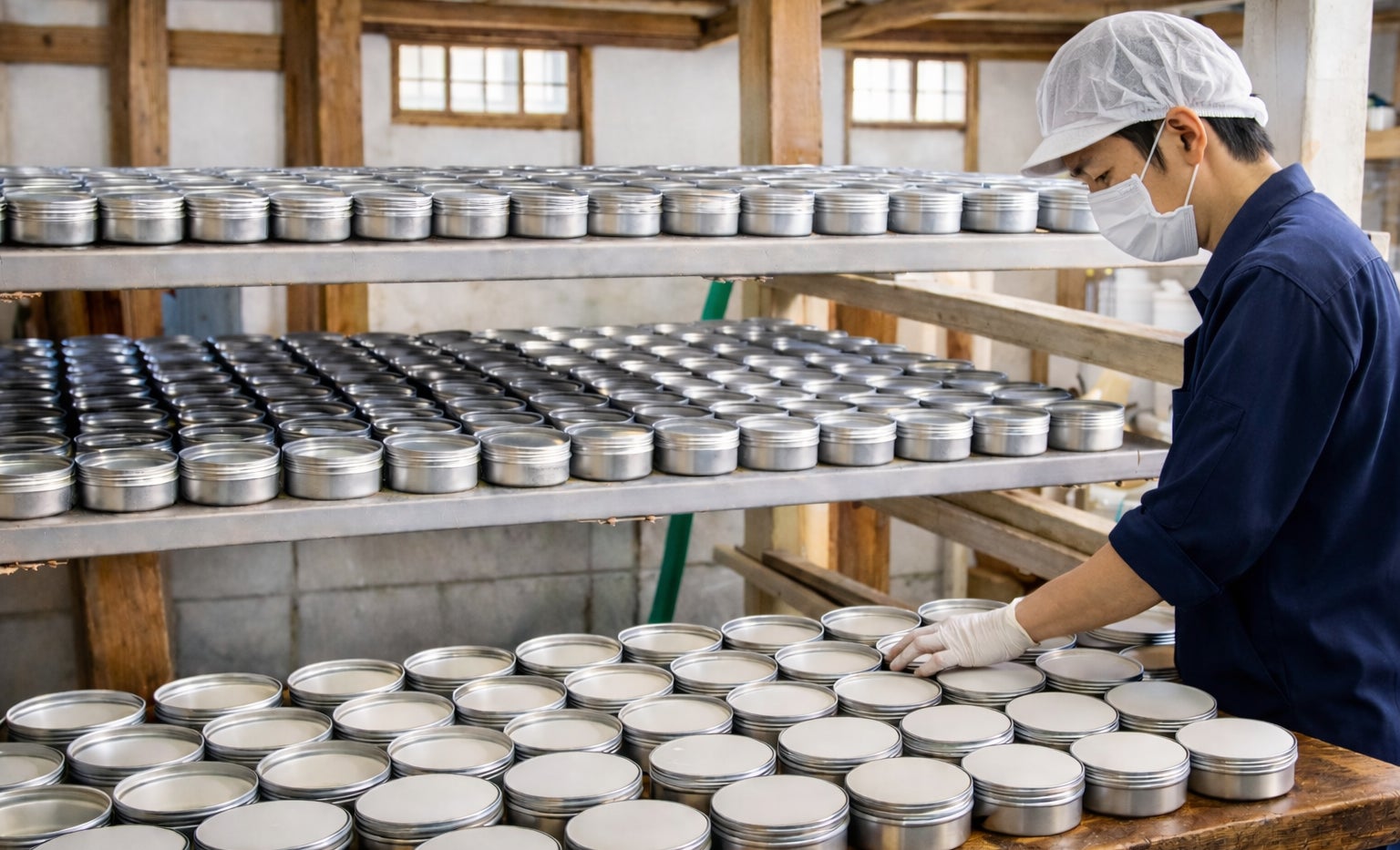 私たちは、この蔵の中で、クリーナーを一つひとつ丁寧に手づくりします。液体でも粉でもない、バーム状の「お掃除ワックスクリーナー」。水を使わず、泡も出ずに汚れを落とす。世界でもほとんど例のない新しいかたちの掃除用クリーナーです。