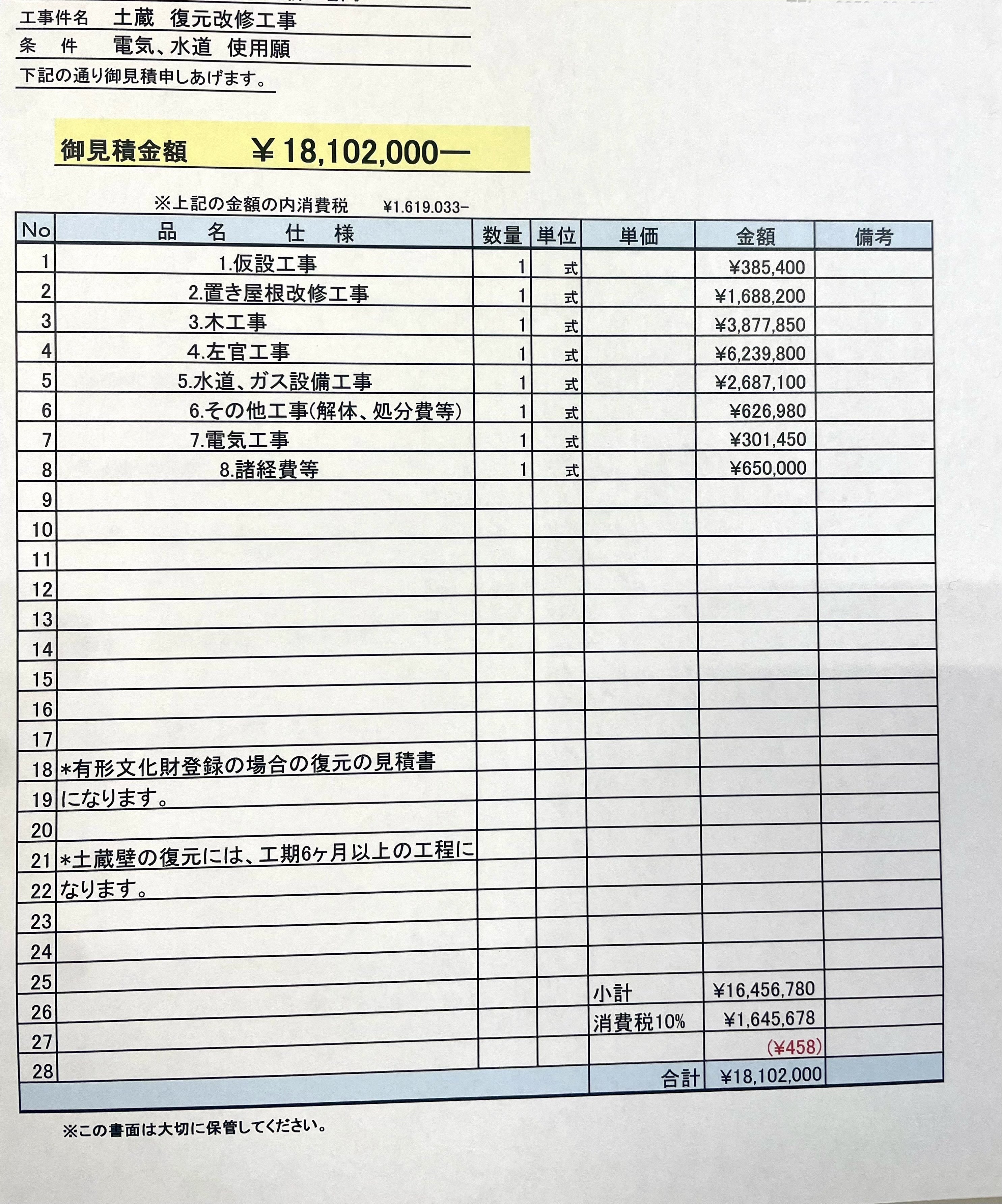 本プロジェクトは、まずこの蔵を安全に使い始められる状態に整えるための第一段階として、こちらの金額よりスタートさせていただきたいと考えております。本格的な仕上げや追加整備につきましては、今後の運用とともに、段階的に進めてまいります。
