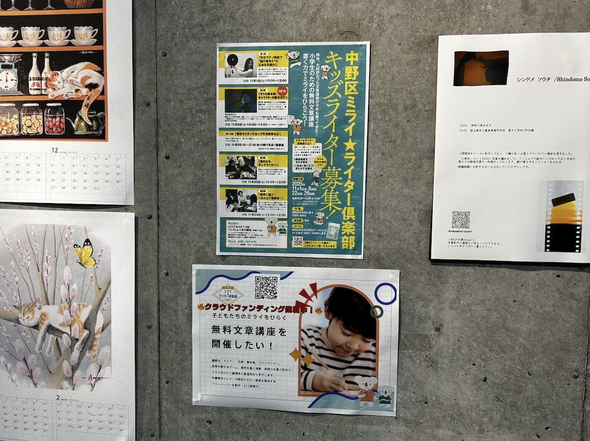絵本やポストカード、キーホルダーなど、25名のアーティストさんによる作品がたくさん展示されています。