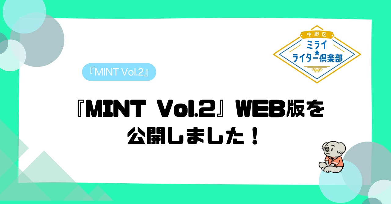 お待たせいたしました。子どもたちが取材・執筆した『MINT Vol.2』のWeb版を公開しました。ぜひお時間のあるときに、気軽に読んでいただけたらうれしいです!