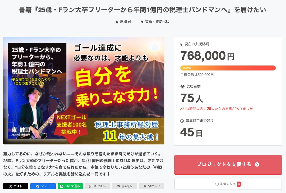 書籍『25歳・Fラン大卒フリーターから年商1億円の税理士バンドマンへ』を届けたい