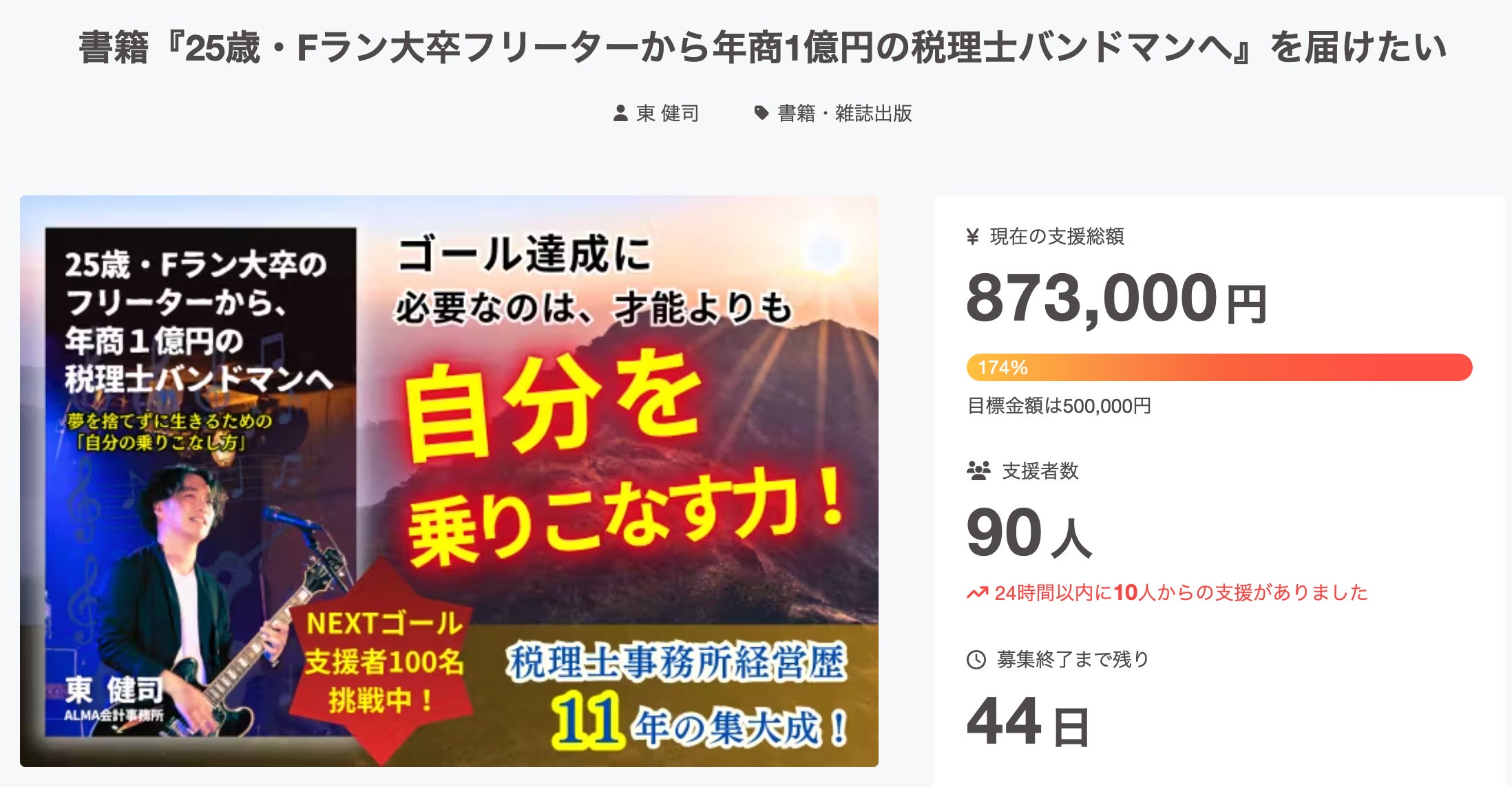 書籍『25歳・Fラン大卒フリーターから年商1億円の税理士バンドマンへ』を届けたい