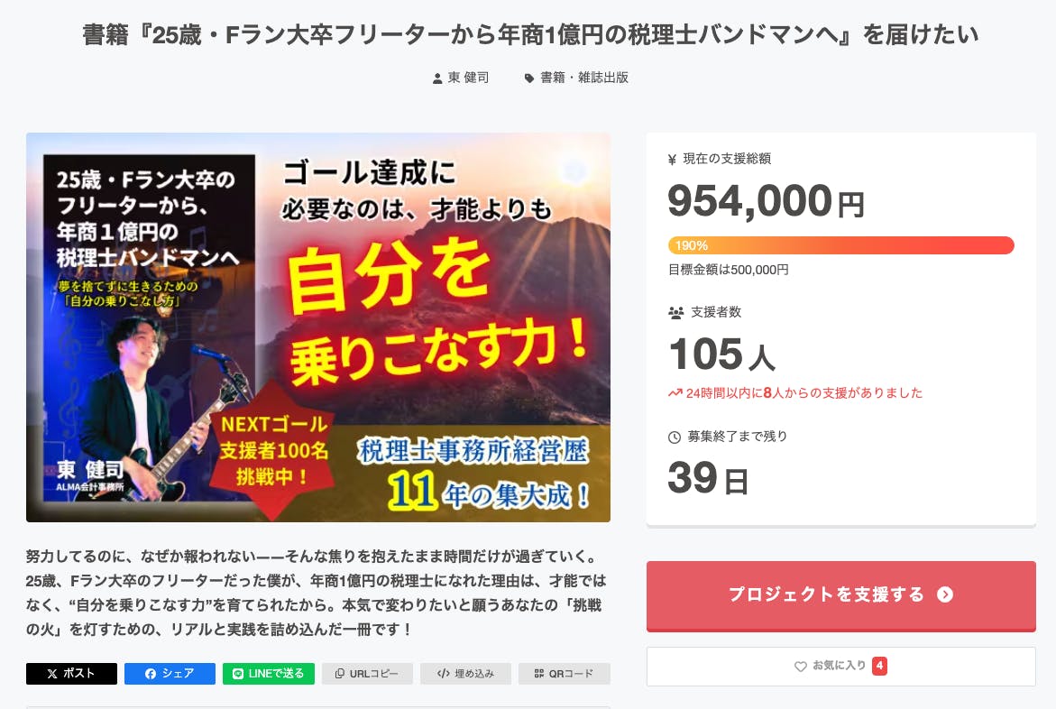 と口にしている人がいるなら、「この税理士バンドマンが、クラウドファンディングでこんなこと伝えてるんやけどさ」と伝えてみてもらえたら嬉しいです。