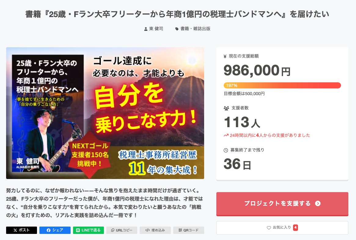 書籍『25歳・Fラン大卒フリーターから年商1億円の税理士バンドマンへ』を届けたい