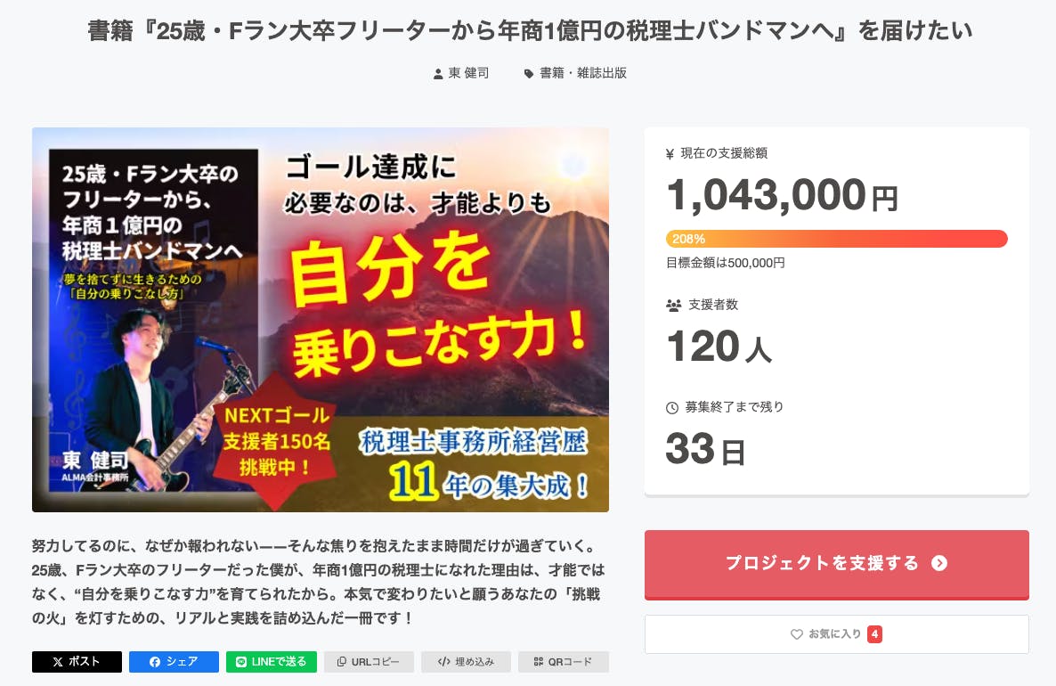 書籍『25歳・Fラン大卒フリーターから年商1億円の税理士バンドマンへ』を届けたい