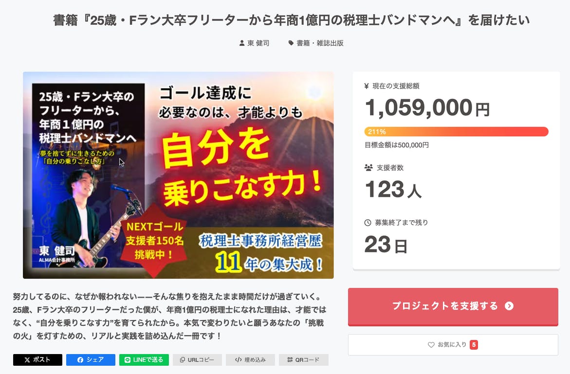 書籍『25歳・Fラン大卒フリーターから年商1億円の税理士バンドマンへ』を届けたい