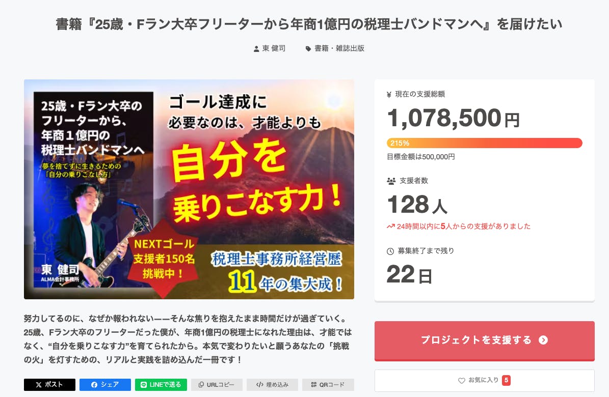 書籍『25歳・Fラン大卒フリーターから年商1億円の税理士バンドマンへ』を届けたい