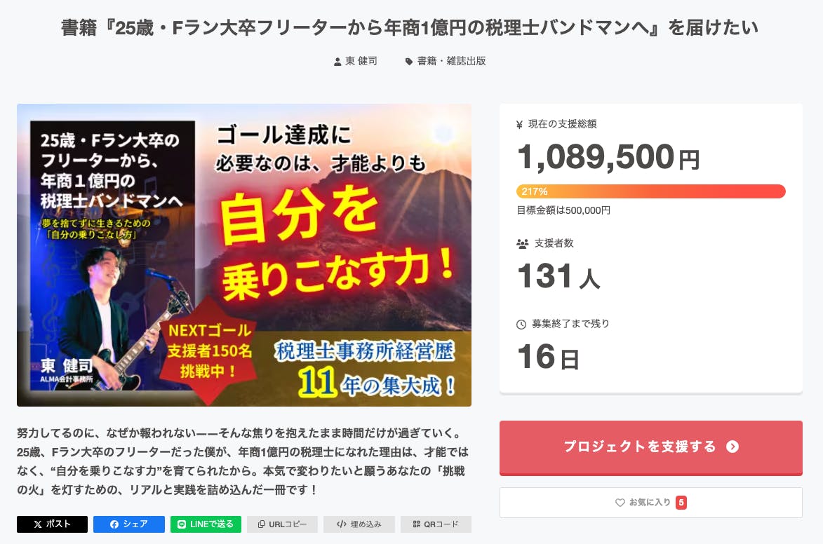 書籍『25歳・Fラン大卒フリーターから年商1億円の税理士バンドマンへ』を届けたい