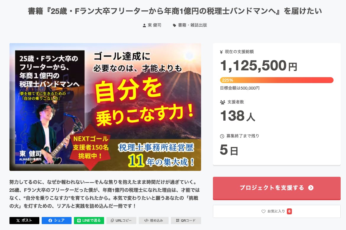 書籍『25歳・Fラン大卒フリーターから年商1億円の税理士バンドマンへ』を届けたい