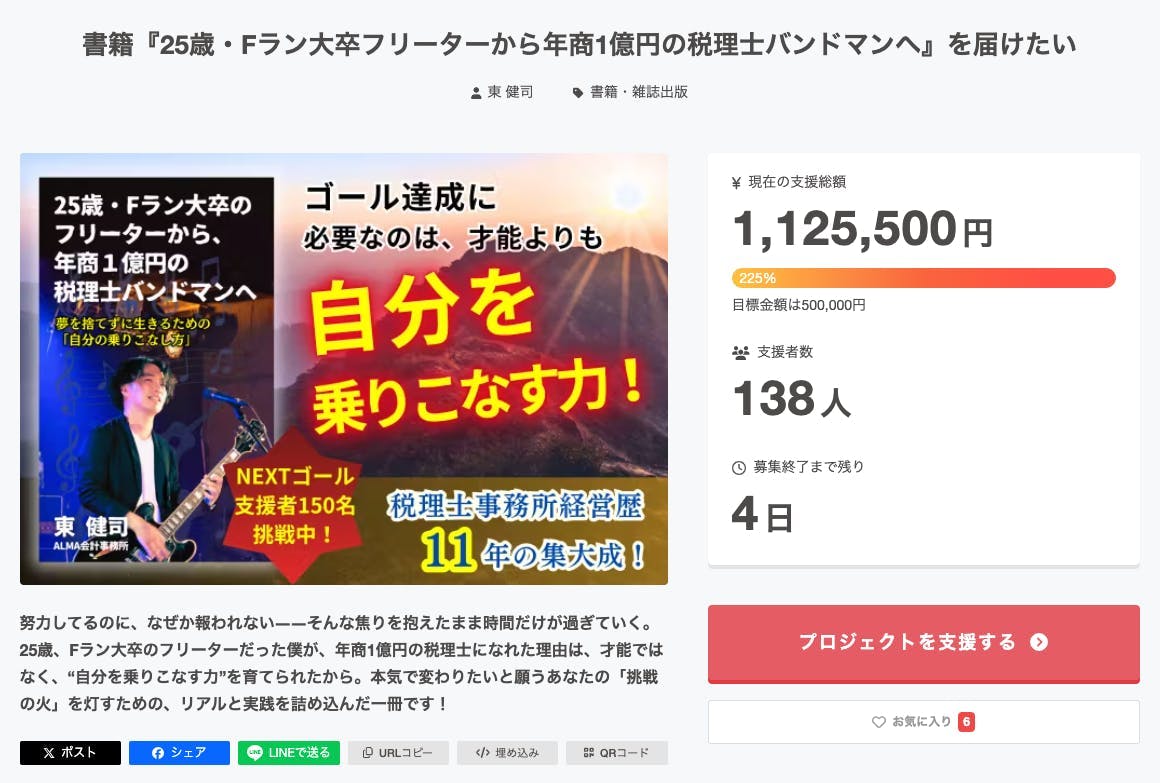 書籍『25歳・Fラン大卒フリーターから年商1億円の税理士バンドマンへ』を届けたい