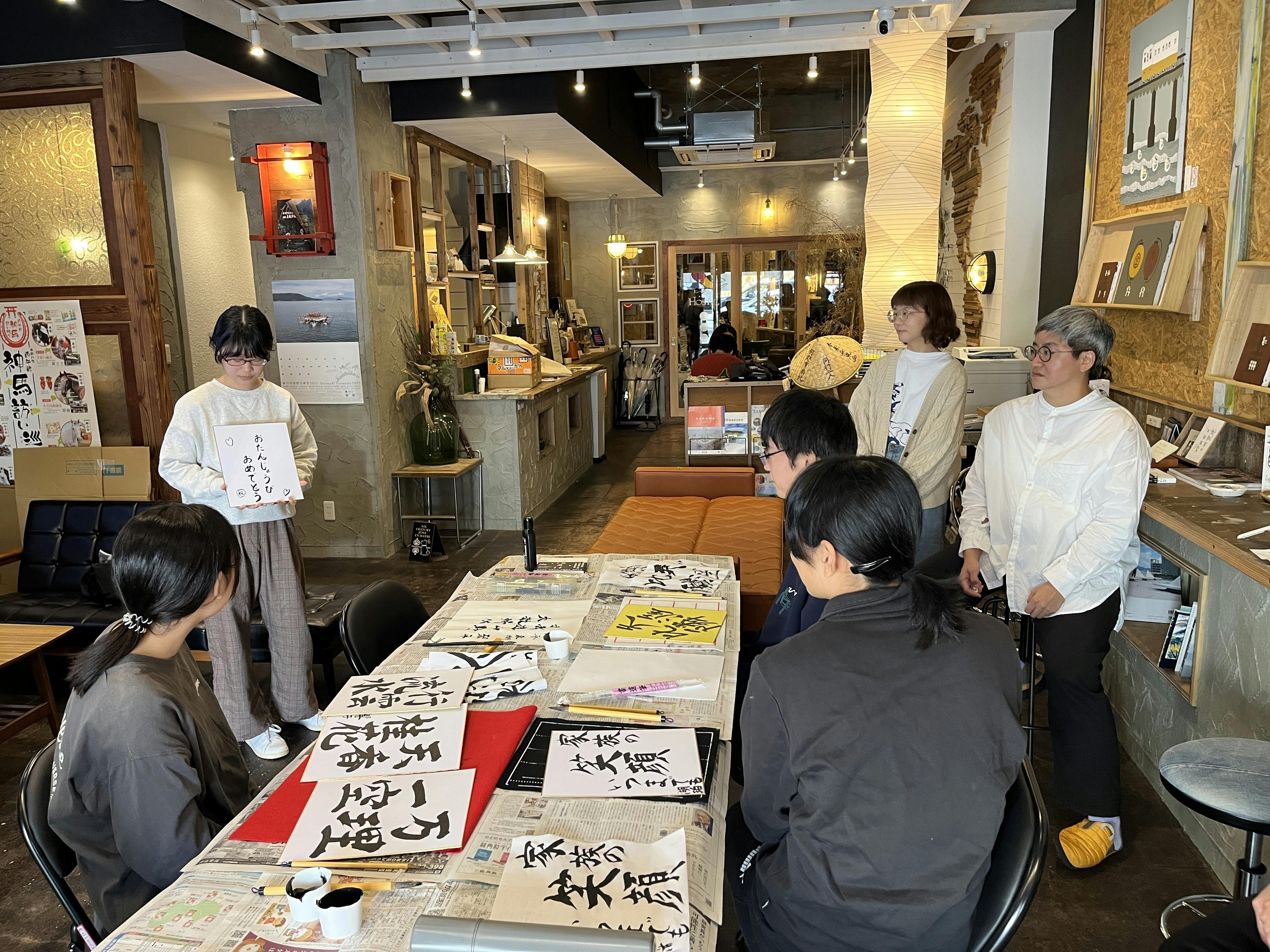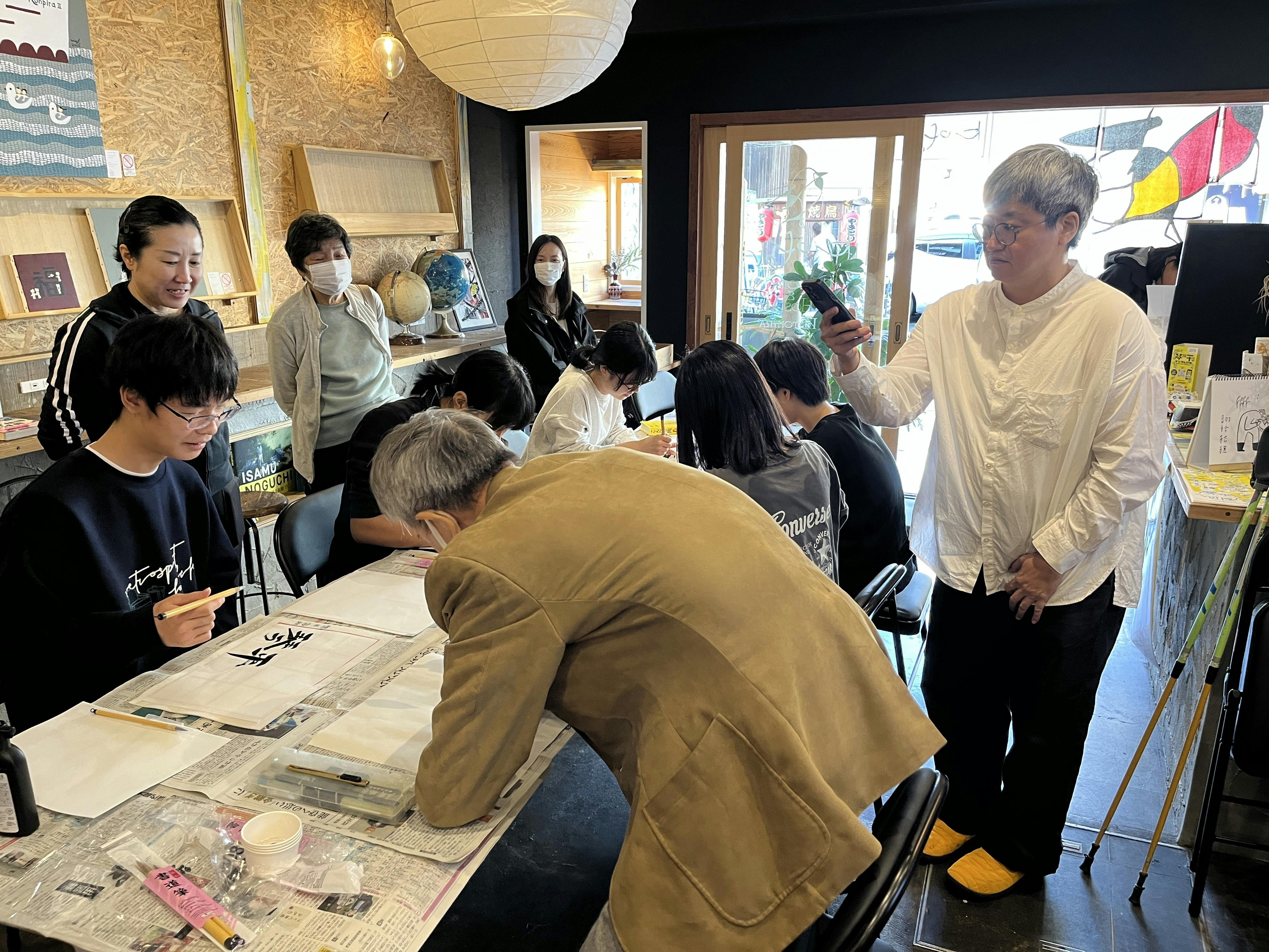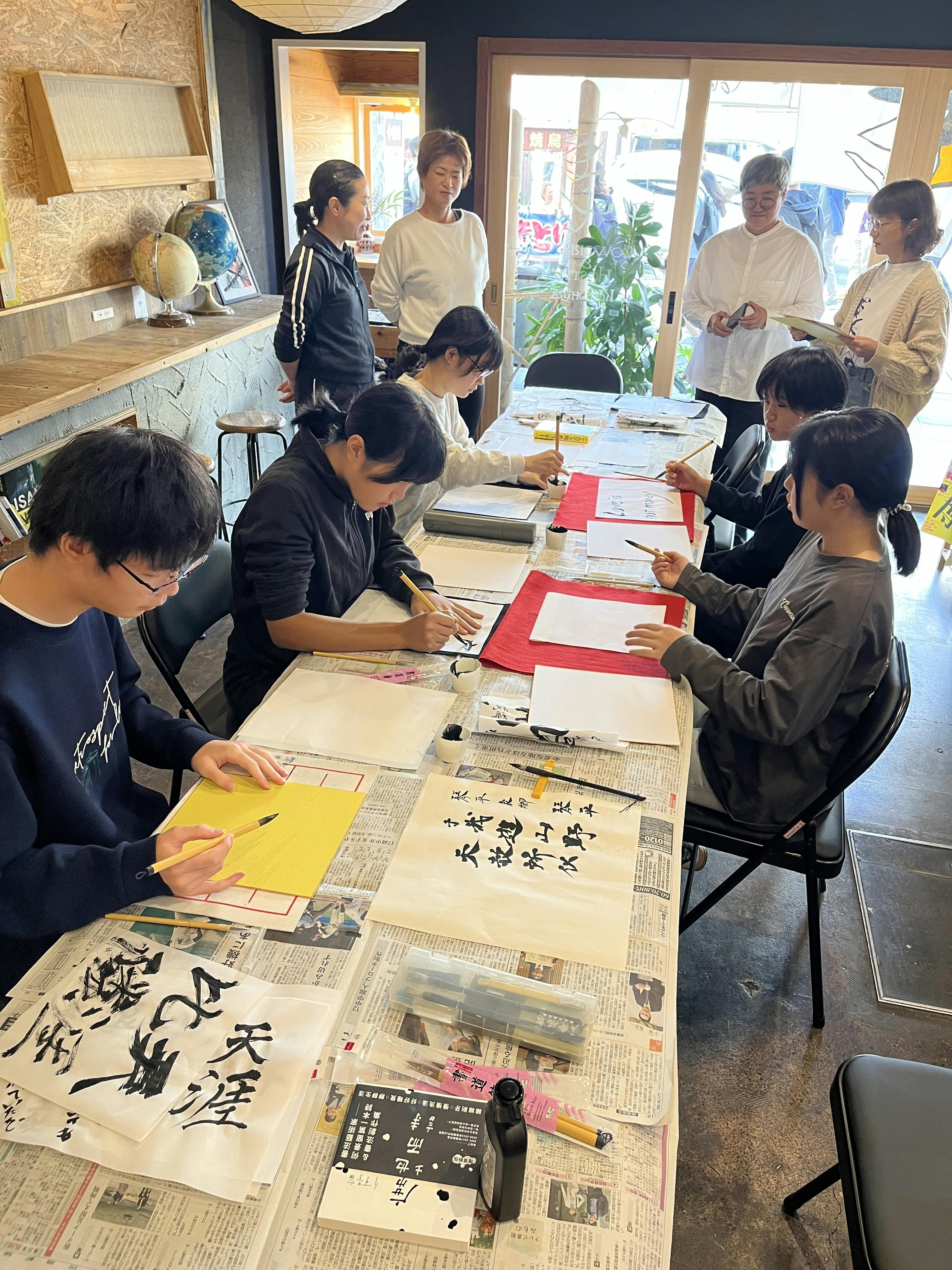 参加してくださったのは地元の学生5名とそのご家族。普段から書道を習っているメンバーがほとんどでした。