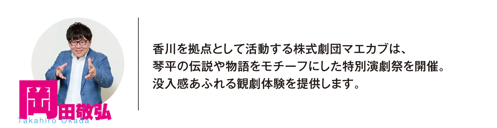 琴平には、金刀比羅宮や金丸座をはじめ、世界に誇るべき文化資産が存在します。これらの「地域の宝」に現代アートの光を当てることで、その価値を再発見し、新しい世代や世界中の人々に届けたい。