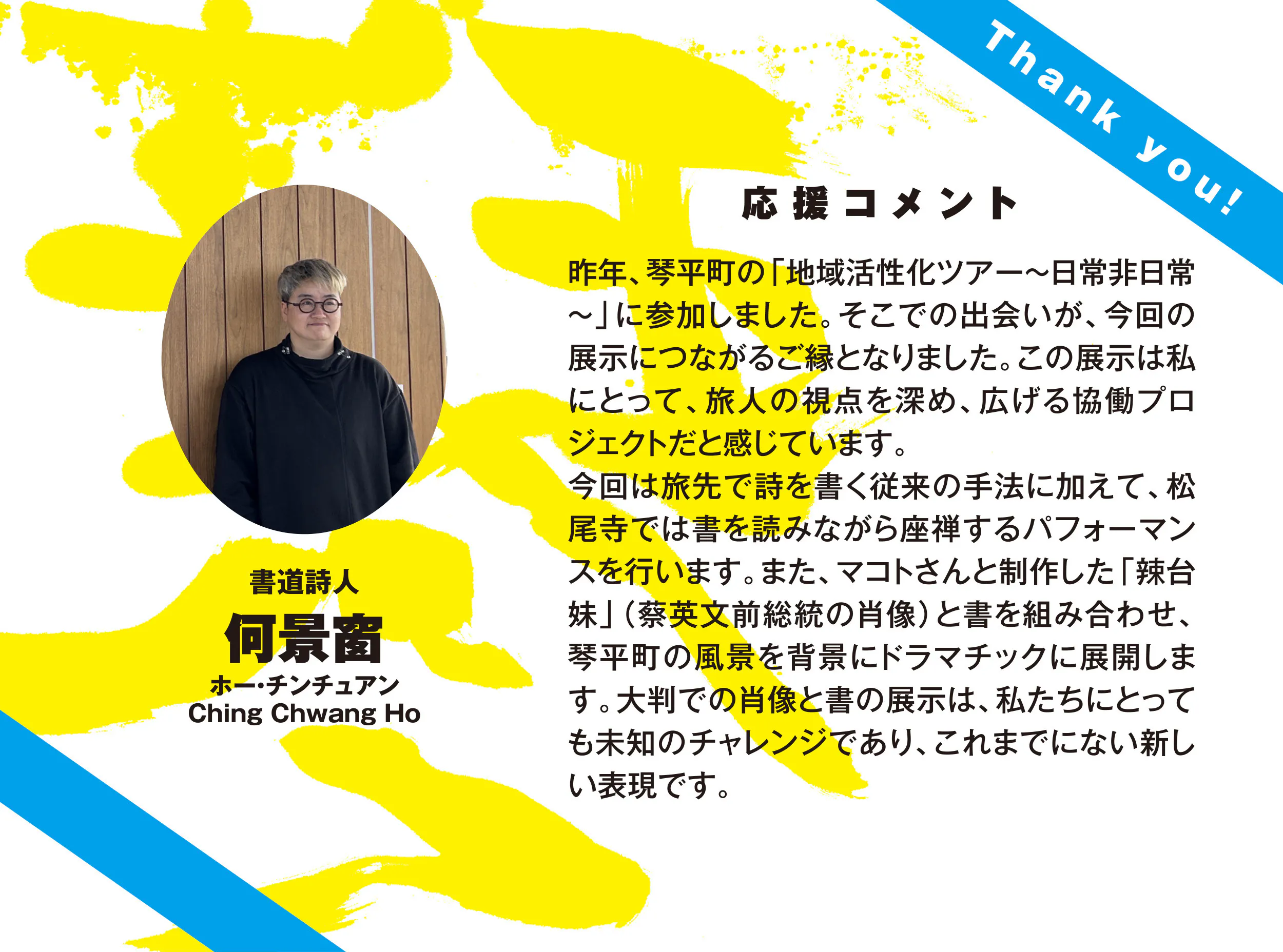 ●琴平に縁のある台湾の現代アーティスト、書道詩人と写真家によるユニット・何景窗(ホー・チンチュアン)× 林育良(マコト・リン)やVigaらによるインスタレーション
