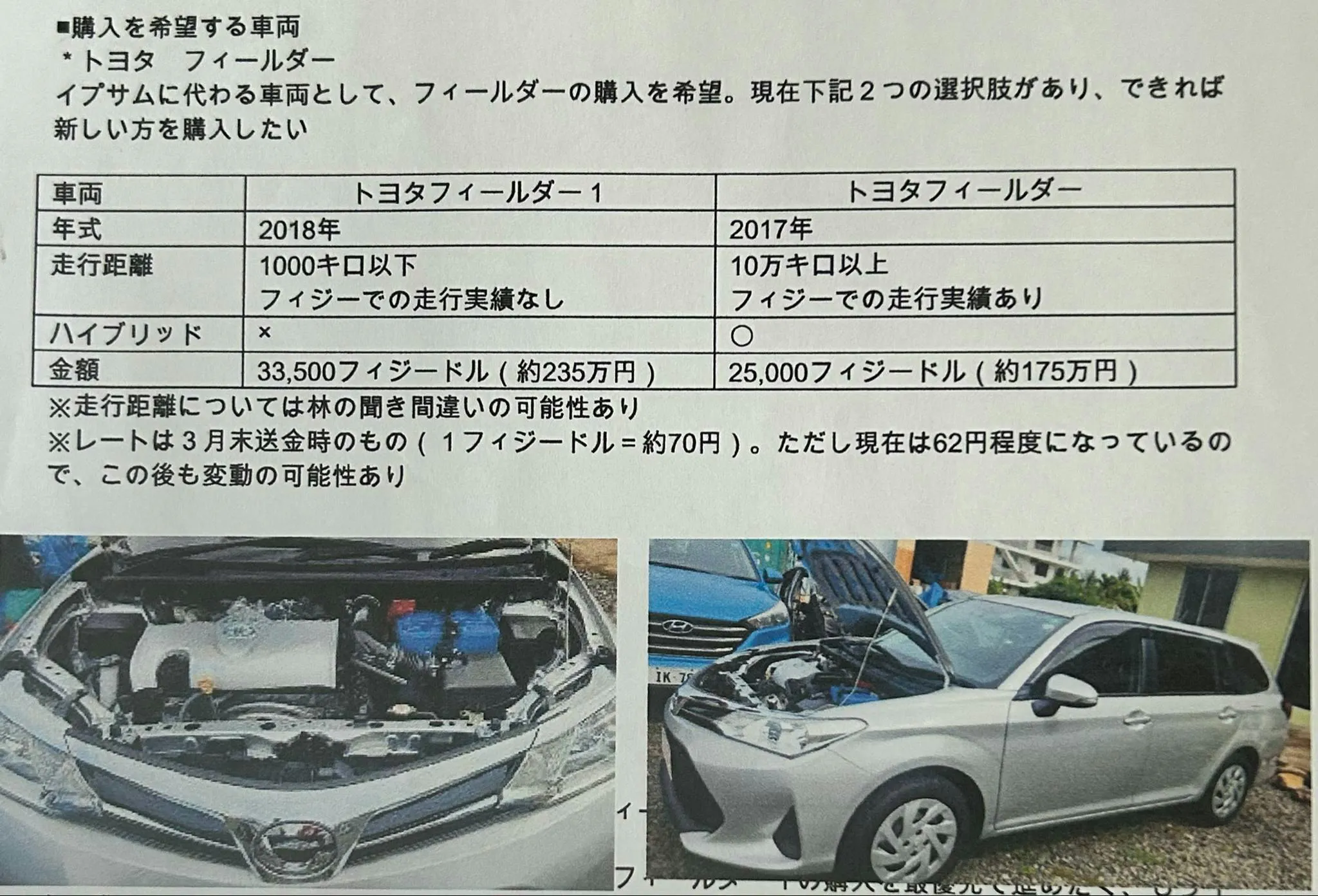 フィジーの大切な仲間たちのために、どうしても必要な車を届けたい。