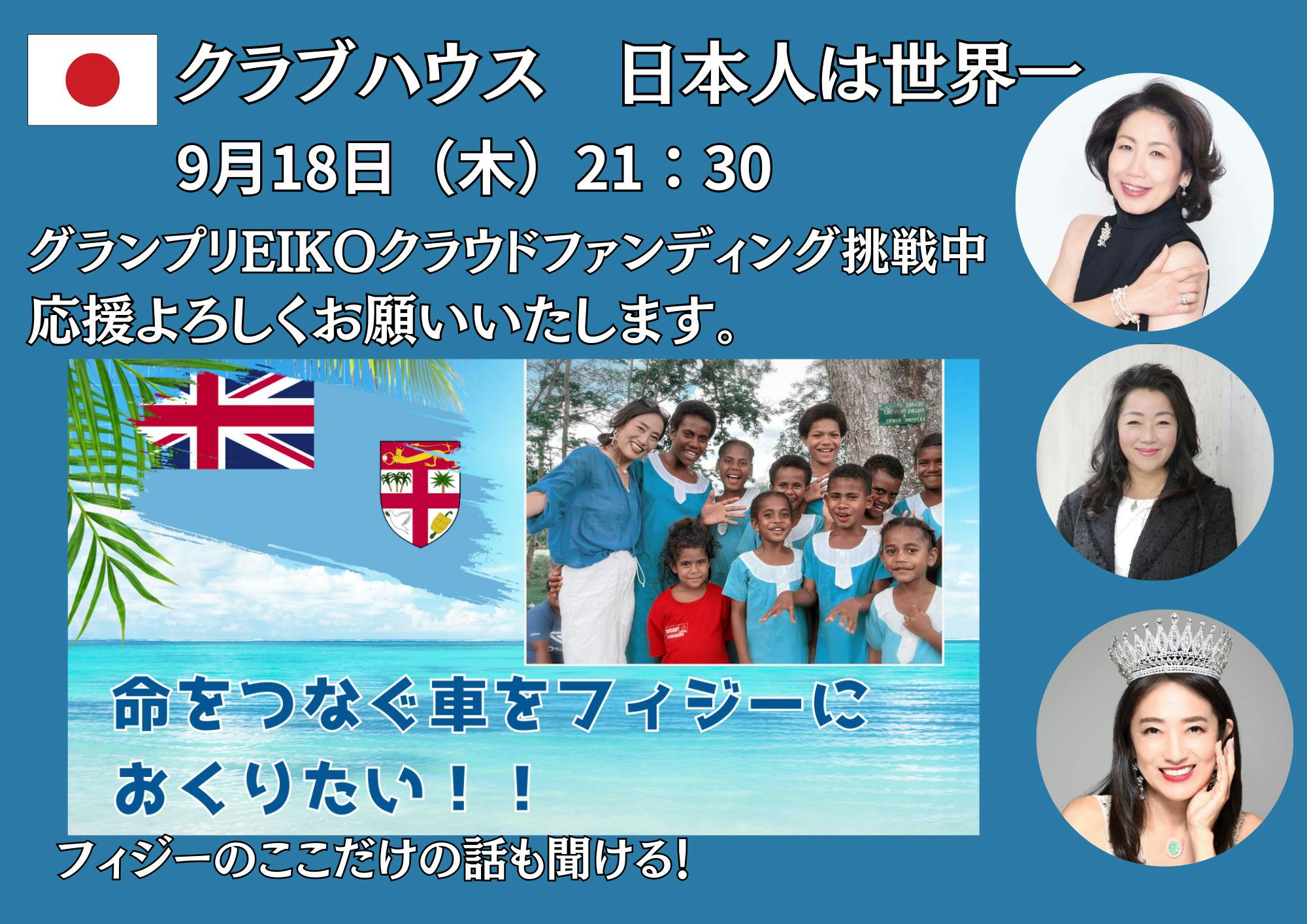 本日は、私が 5年間モデレーターを務めてきたクラブハウスのルーム「日本人は世界一」 にて、想いを込めてお話をさせていただきます。