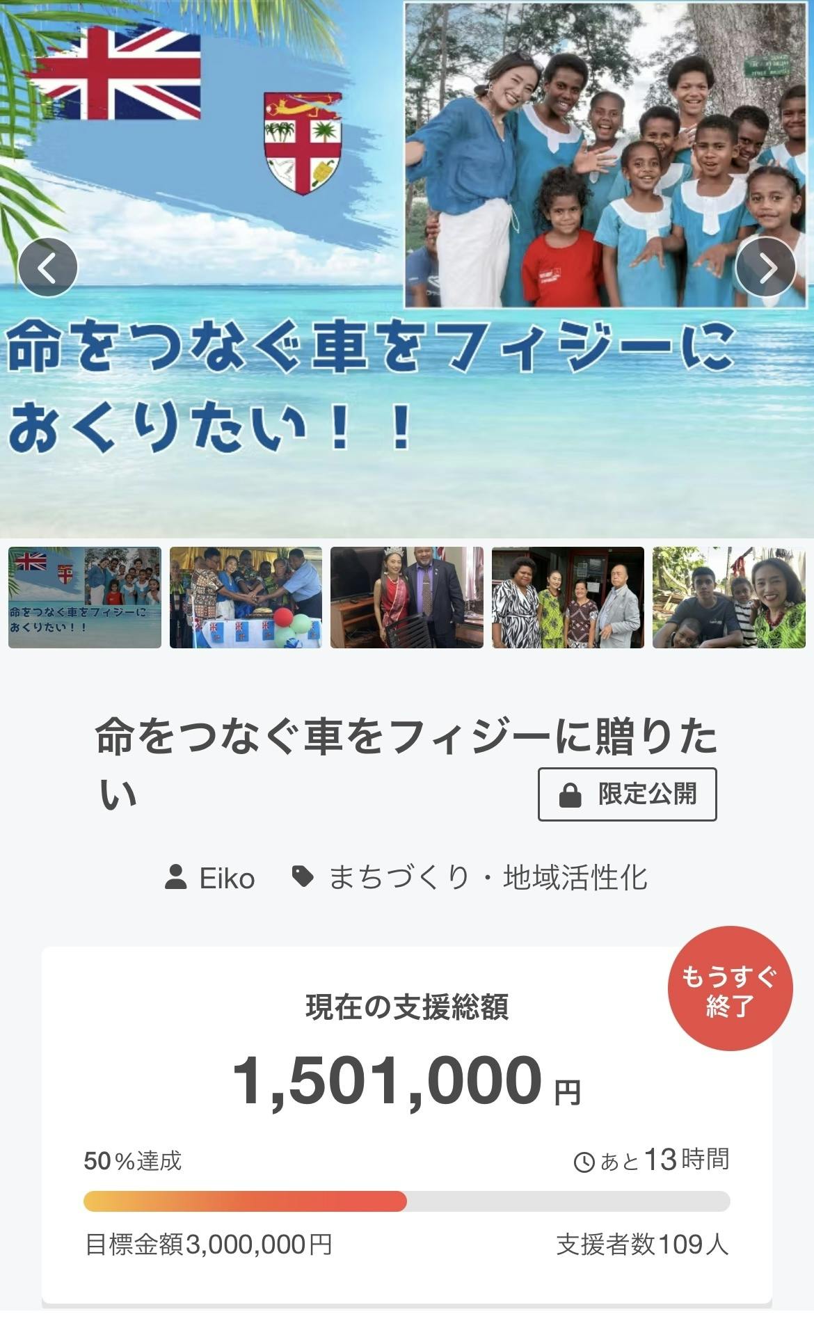 フィジーの人々の希望となる車が風を切って走るところを想像するとワクワクします