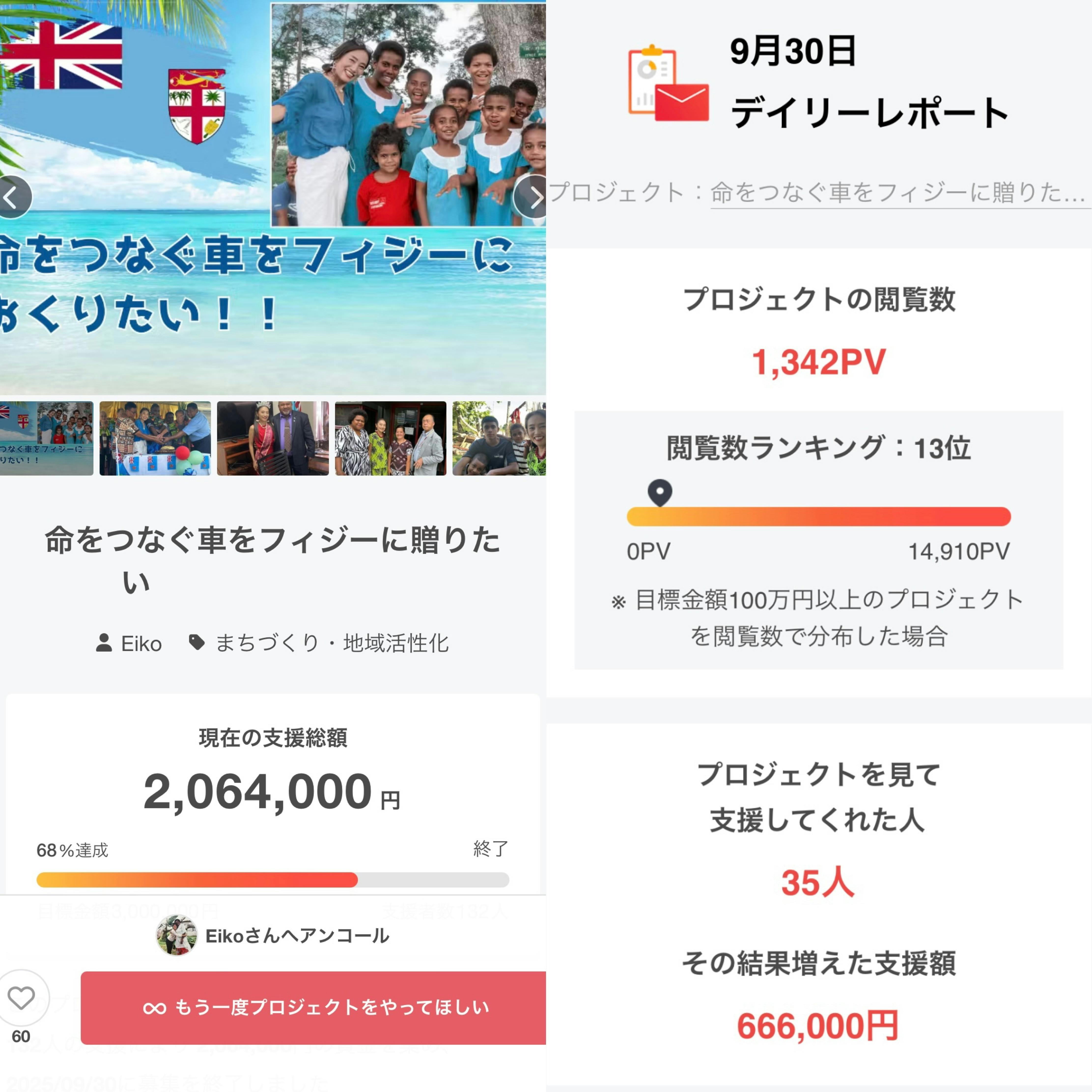 最終日の9月30日だけで1,342回ものアクセスがあり、35名の方が新たにご支援を寄せてくださり、666,000円もの応援が加わりました。