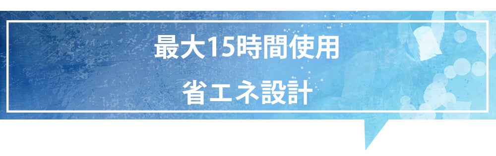 省エネ設計で最大15時間の連続使用が可能です。1日中お出かけの際でも、バッテリー切れを心配することなく使用できます。
