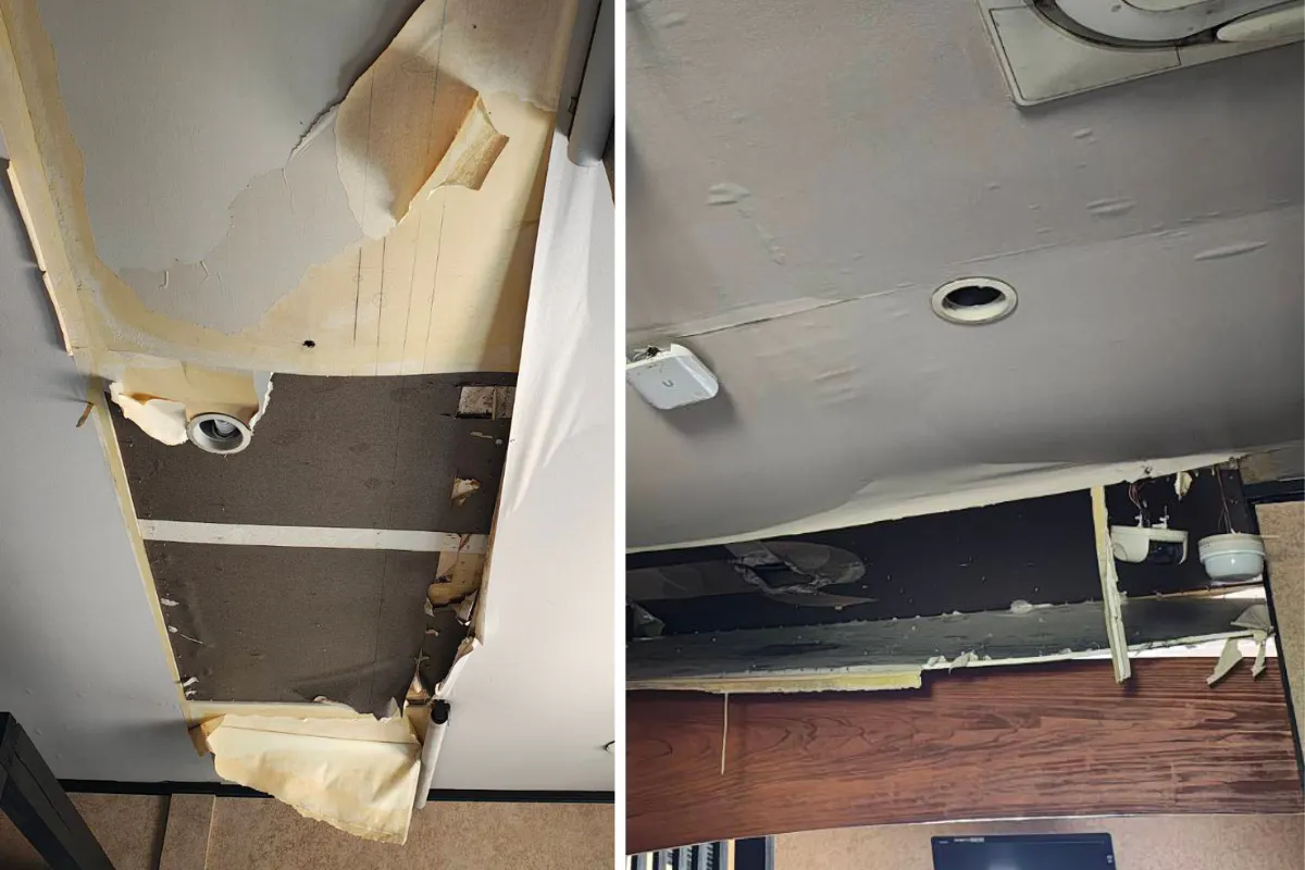 1階はなんとか焼け残った部分があったものの、消火のために大量の水を浴び、床や壁、天井が剥がれてしまっています。