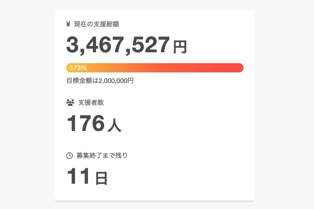 クラウドファンディング終了まで、残り11日。