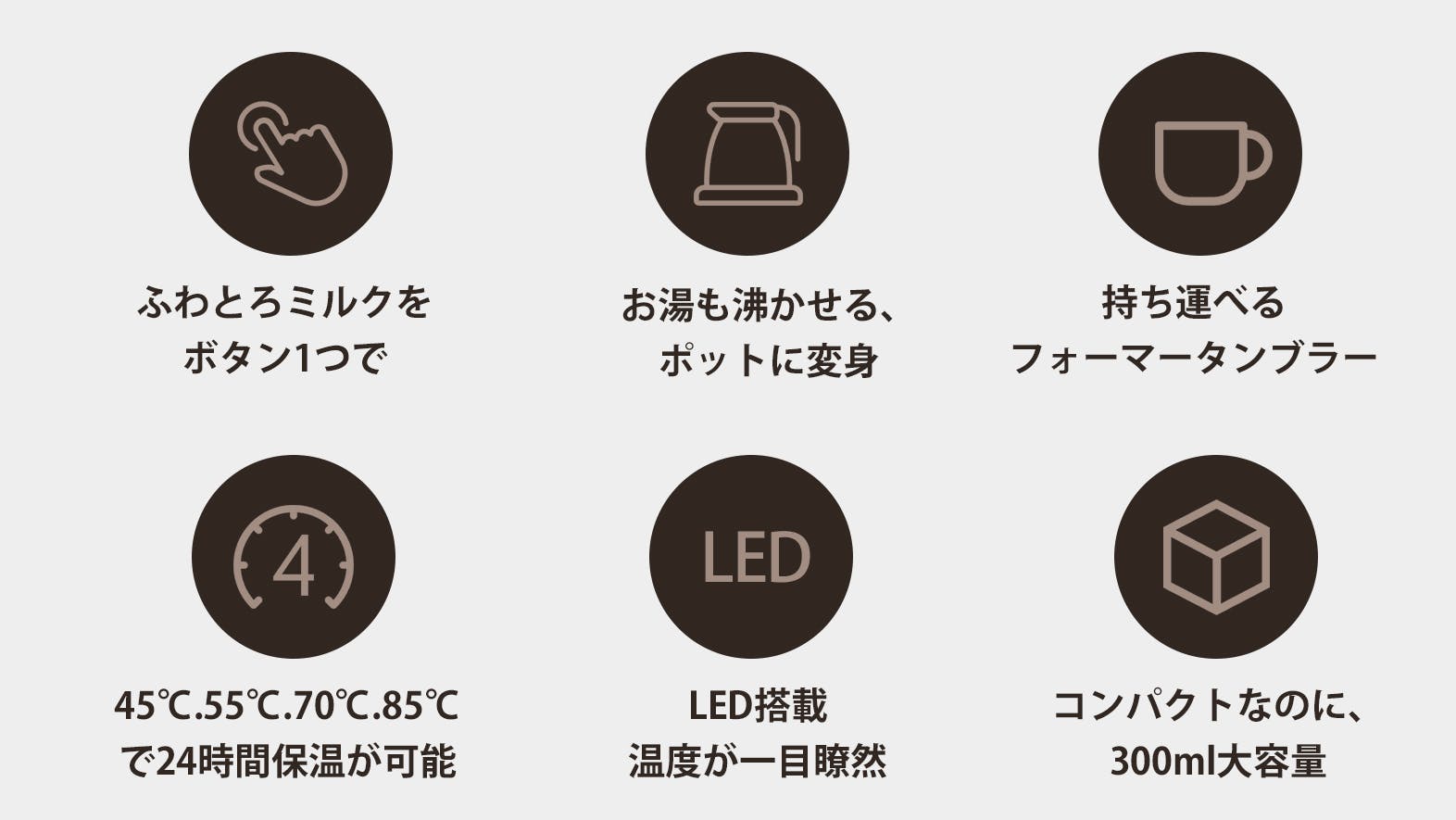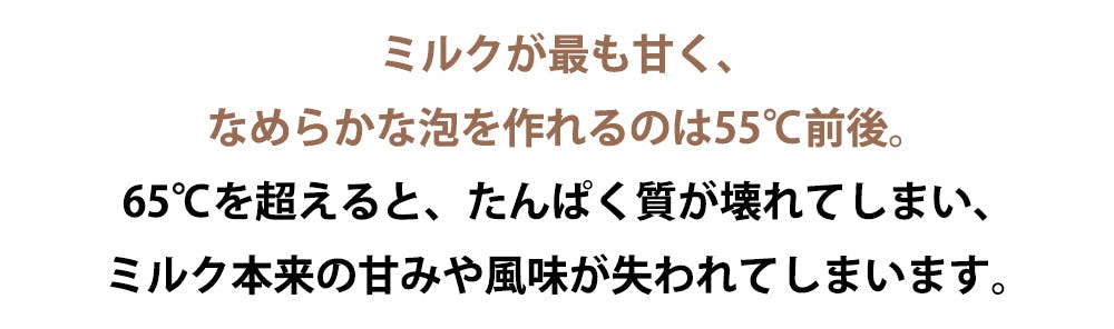 これに対し、SUPWELLの「フォームミルク」は、高速回転で空気を均一に取り込むため、牛乳100%のきめ細やかでふわふわな泡立ちが実現。