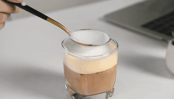 一般的なカフェのミルク泡は「スチームミルク」として、エスプレッソマシンの蒸気で空気を含ませて作ります。そのため、水分を含んだ液状の薄いものになります。